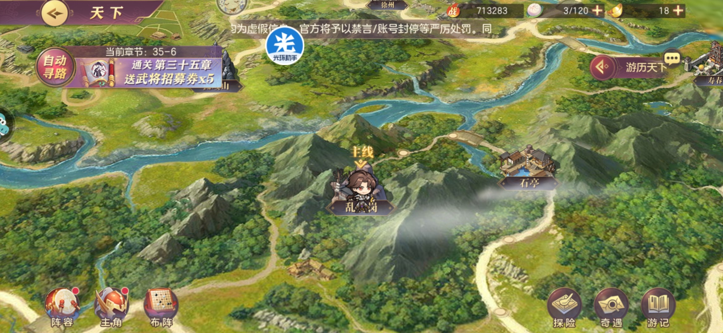 2、刷到10章,开始刷黄天秘境,然后给主将装备升阶,然后去竞技场刷到100名左右