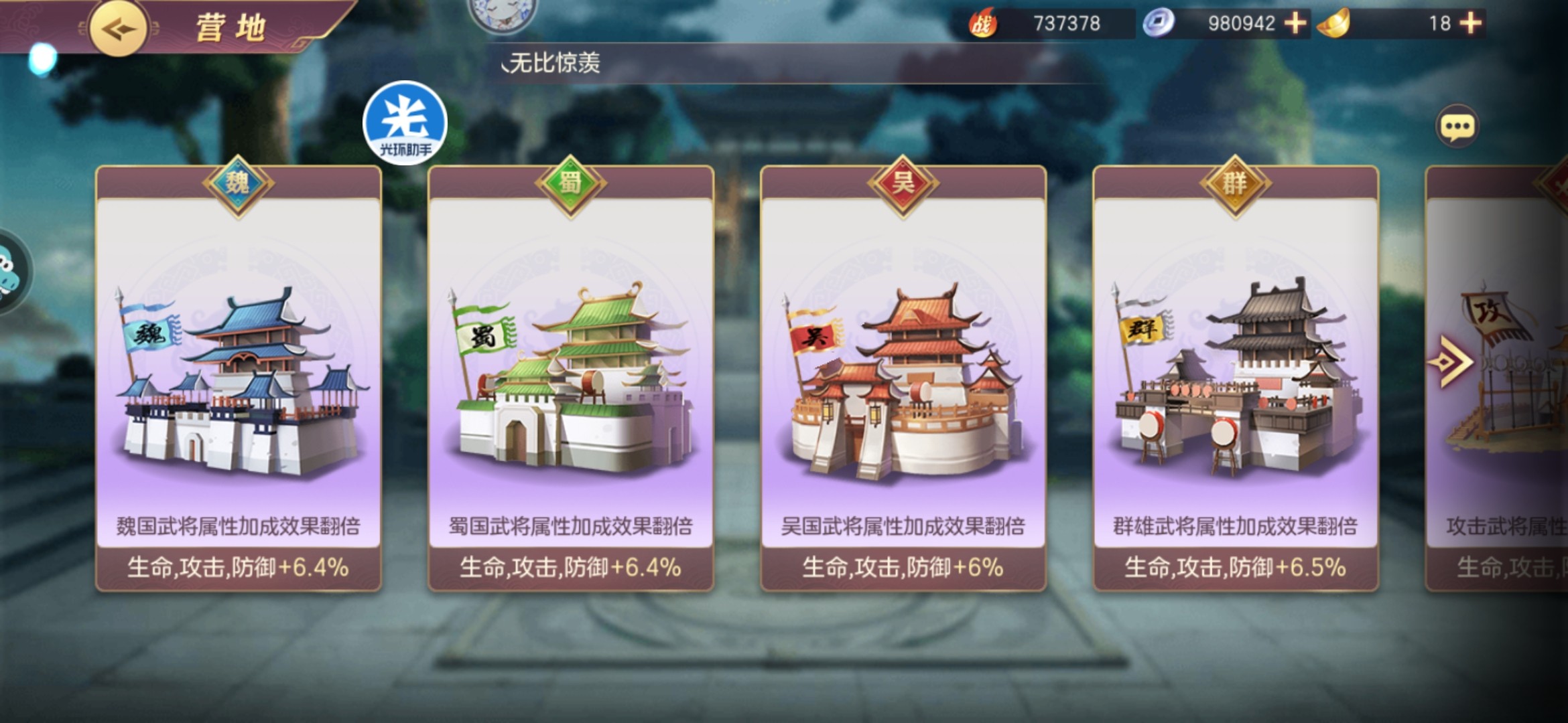 开助阵营地的最后一个为主,开助阵的优先级主要看自己的主C是哪个国家的,是哪个国家的就先开哪个国家助阵,前期不需要都开全,点一个国家,一个辅助,一个辅助+主c位置的就行。