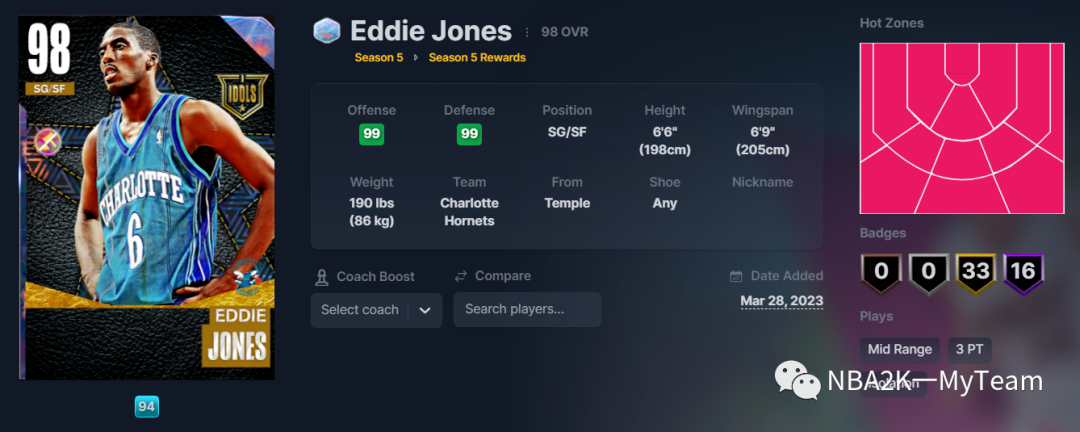 【徽章】不知疲倦、强投高手、接球投篮手、底线三分球手、神射手、绿色机器、射程无限、进入节奏、闪躲终结者、护球大师、巨人克星。