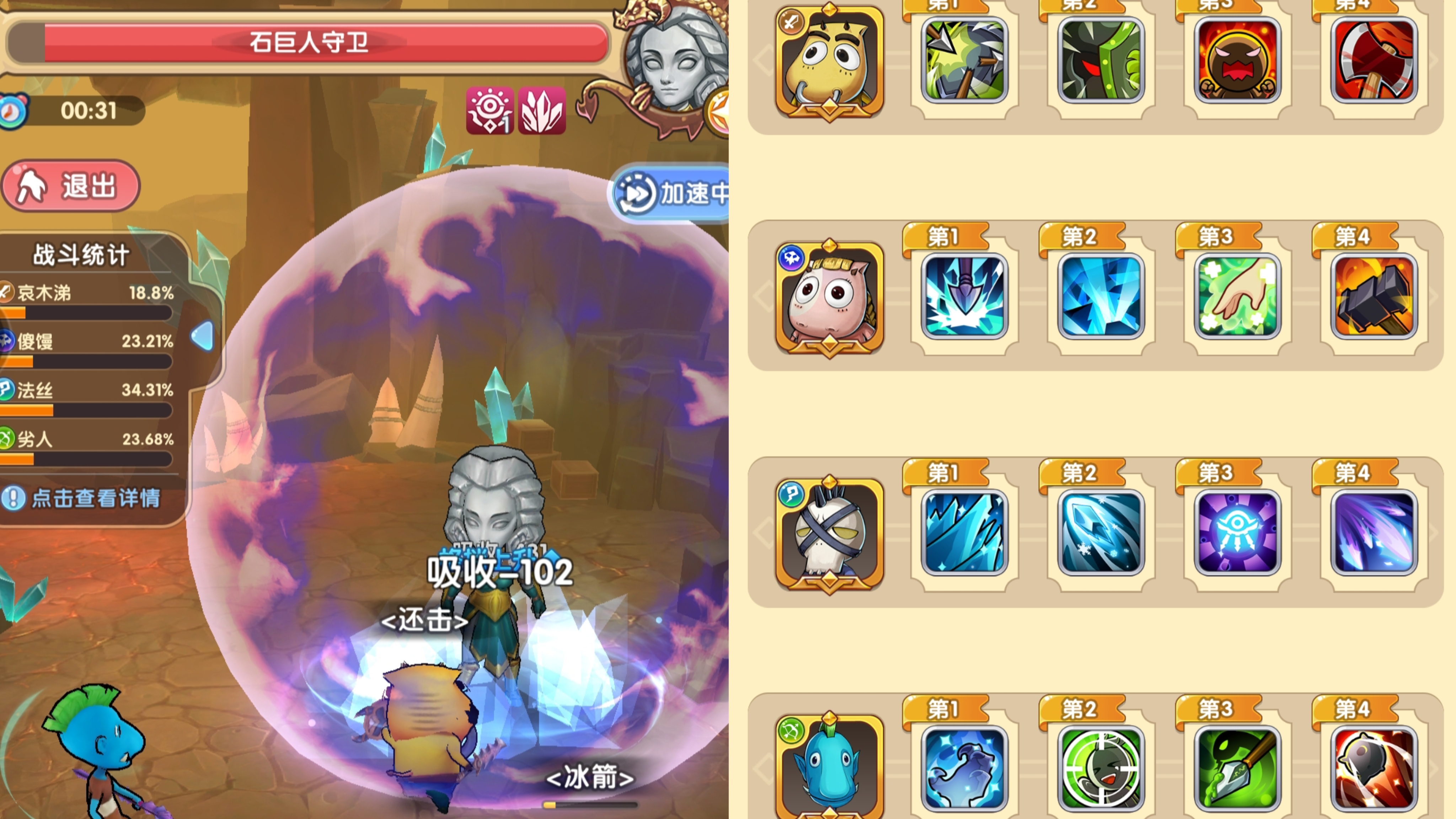第八章节我认为是前期最难的一个关卡,特别是对法师队,劣人队相对而言会比较简单。那么为什么会卡在第八章节呢?因为第八章像【石头卫士】这类boss有着特别厚的盾,以及高防御,所以很难突破,刚开始遇到我也是硬打,之后才发现【驱散】这个技能可以直接破盾,而且游戏里也没有说明驱散可以破盾,所以导致了很多玩家卡在第八章。现在就给大家分享一套我的技能搭配思路。