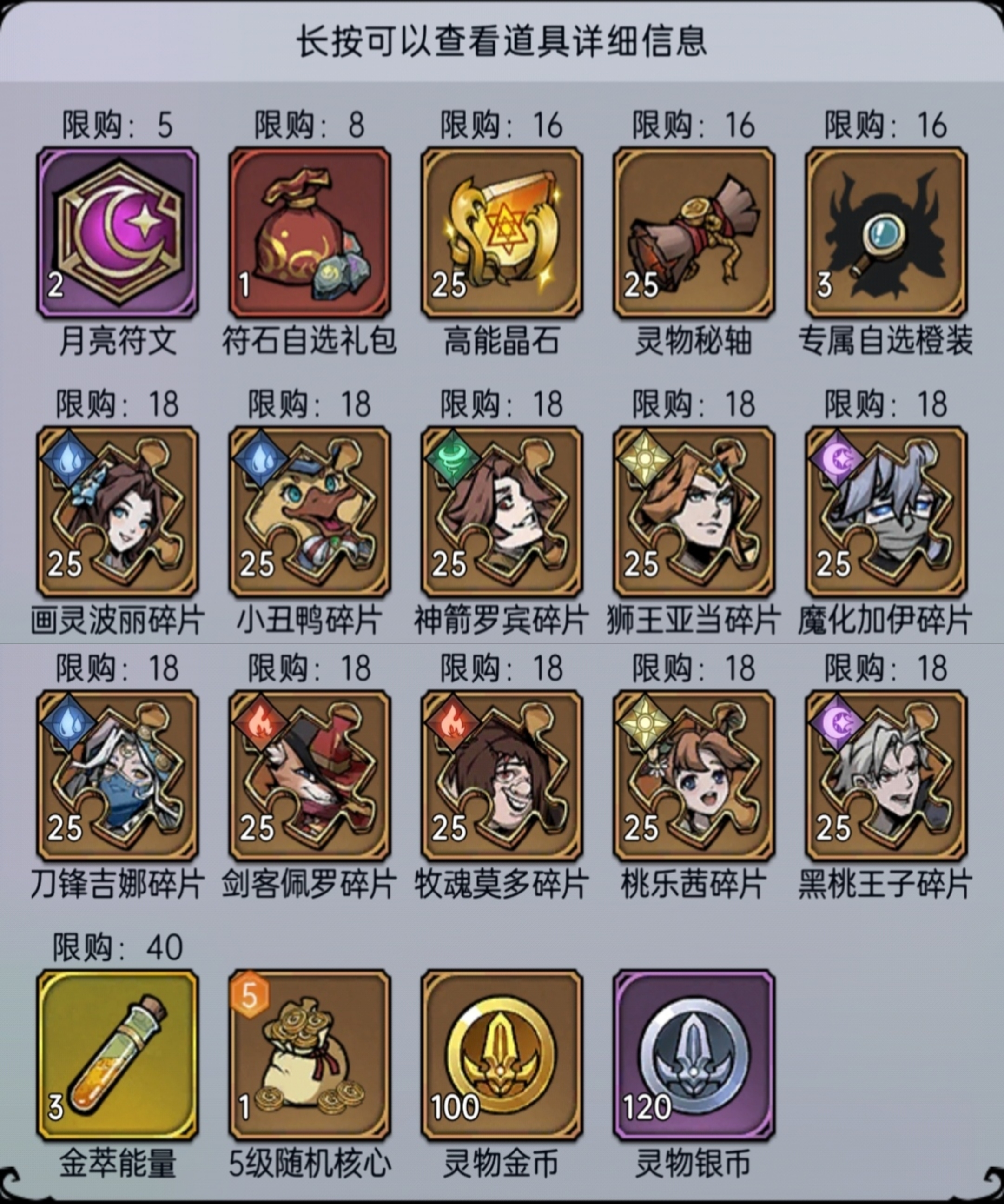 玩偶之家的代币是指英雄池道具兑换商店还是混沌斗技场的兑换商店?新英雄的钥匙道具是要兑换完了,不要留,混沌金币优先拿盲盒+三系辅助卡,然后必拿灵物劵,红灵物和高能晶石你可以考虑拿不拿,剩下的全拿经验!