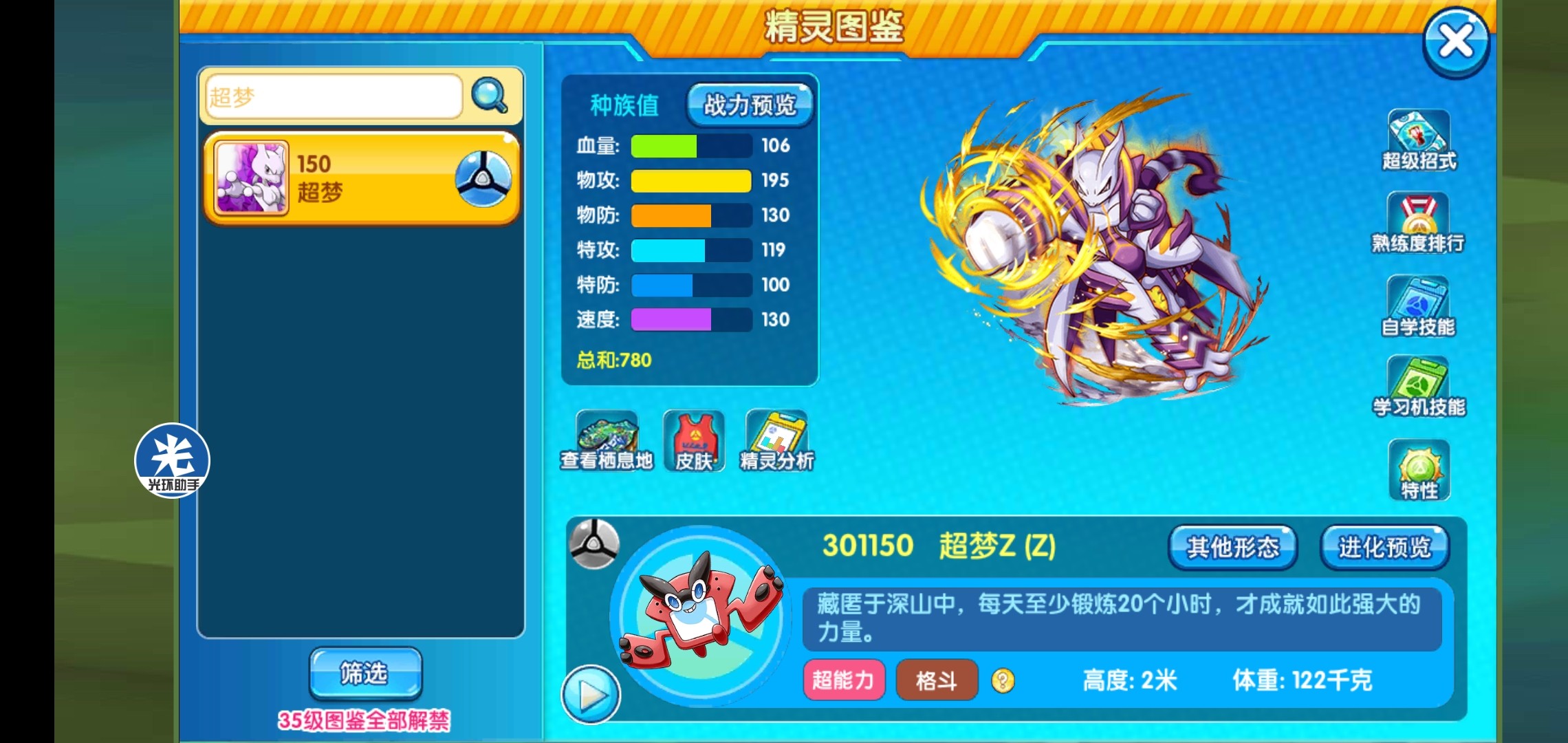 看超梦z的种族,它是个高速物攻手,和超梦X不同的是,它由于是新形态,所以种族将不再受到继承的迫害,实际种族就是最终面板,在现在环境中,它的使用率要比对应的Y高多了,130的速度基本处于第二梯队顶层,而195的物攻更是保证了它强有力的输出,血量、双方都过百,让面板有了保证。