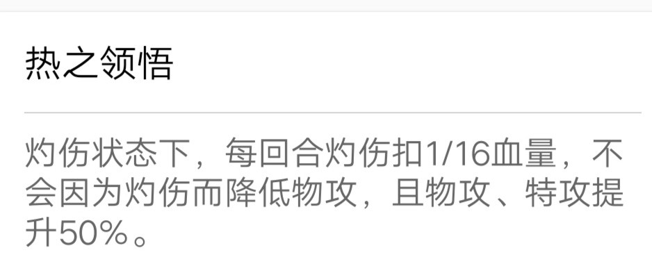 它的特性主要使用热之领悟,让自身受到灼烧后输出威力提升50%,虽然毅力的伤害加成和热领悟一样,都是50%,但是毅力灼烧是扣除1/8的血,要比热领悟的1/16要多。它的灼烧主要通过两种方式附加,一种是携带火焰珠,一种是开大招后通过大招超级爆裂拳后附加,个人建议选择超级大招,这样空出的道具栏可以选择携带增强技能威力的道具,让攻击更暴力。