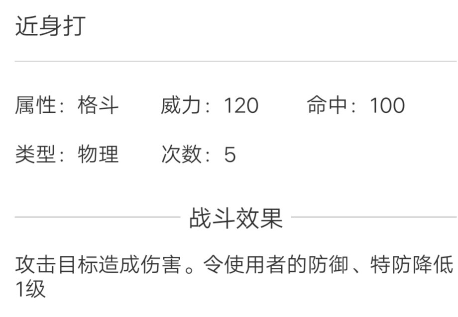 它的属性是超能+格斗,弱二倍飞行系、幽灵系和妖精系,抵抗格斗系和岩石系。克制一般、毒、格斗、恶、岩石、钢、冰七个属性,这个属性其实已经很不错了,打击面在历代版本都属于非常好的,弱点也比较少。