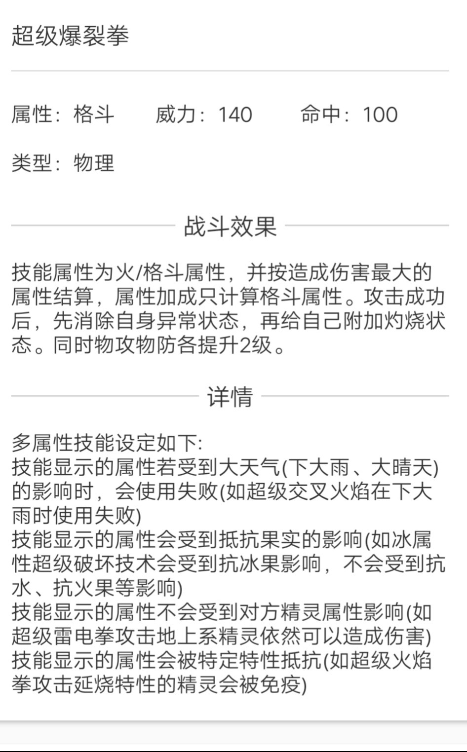 在大招上,直推荐选择超级爆裂拳,无盲点的本系打击,威力爆表,还可以给自身附加灼烧状态,触发热之领悟特性。