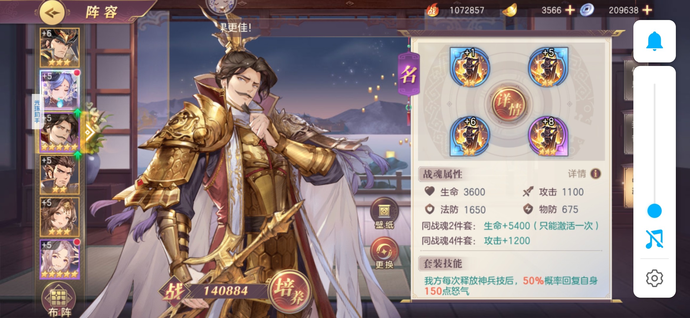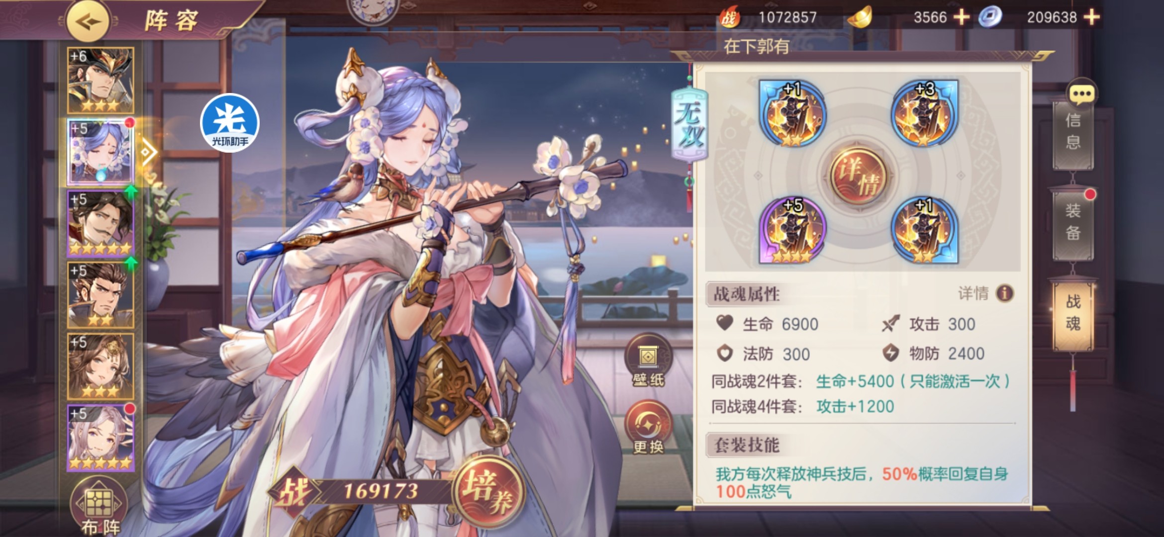 我目前阵容以极限吕布➕保证貂蝉坦度为主,虽然舍弃了蔡文姬的羁绊,但是蔡文姬在无双后回血回怒能力是我看中的,甄姬保证女性角色的坦度,曹操保证我四辅助将的持续辅助能力,五星袁绍保证吕布的回怒释放技能能力,一定程度上搭配曹操,甄姬形成怒气永动机。其他流派心愿单建议: