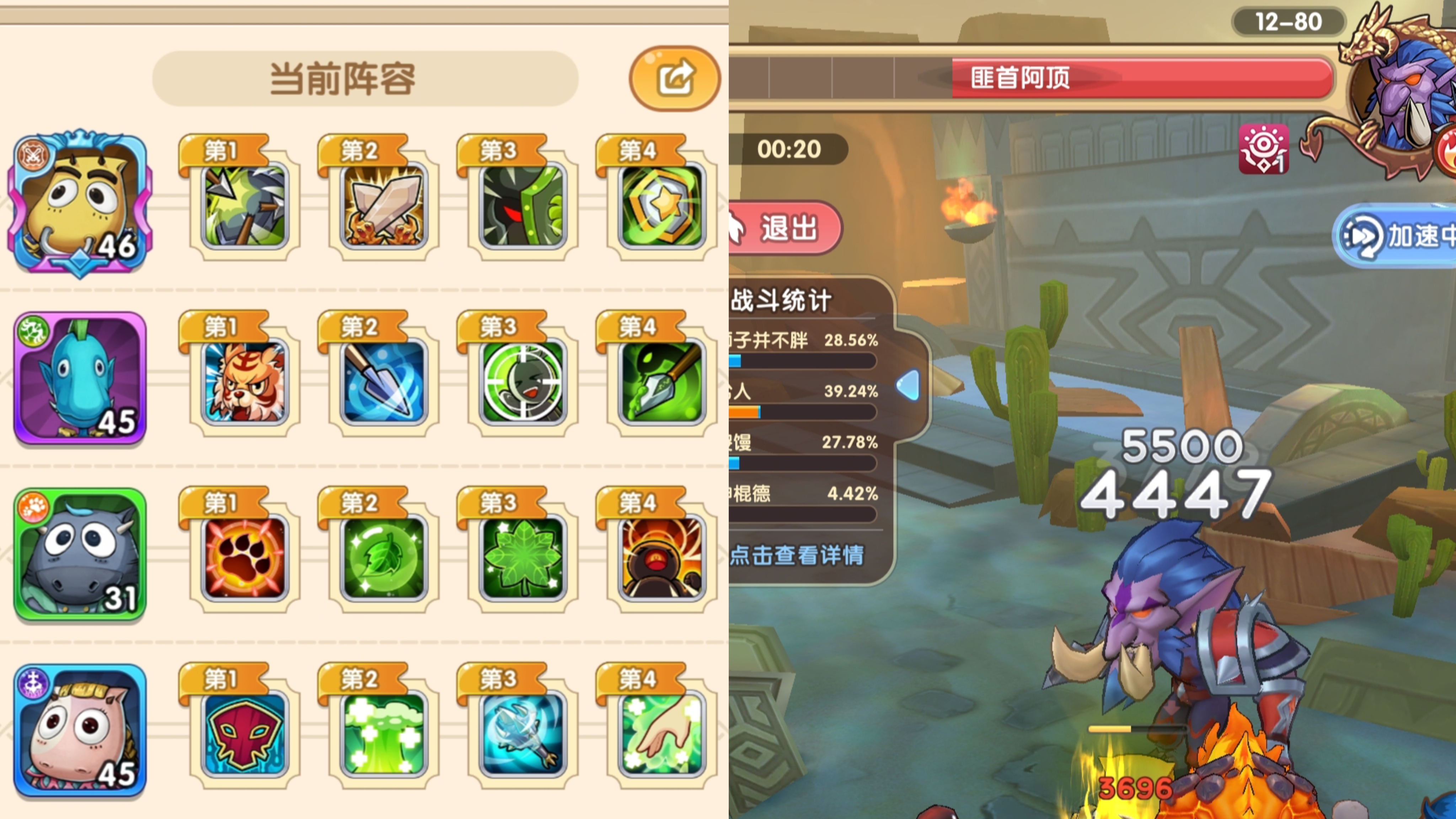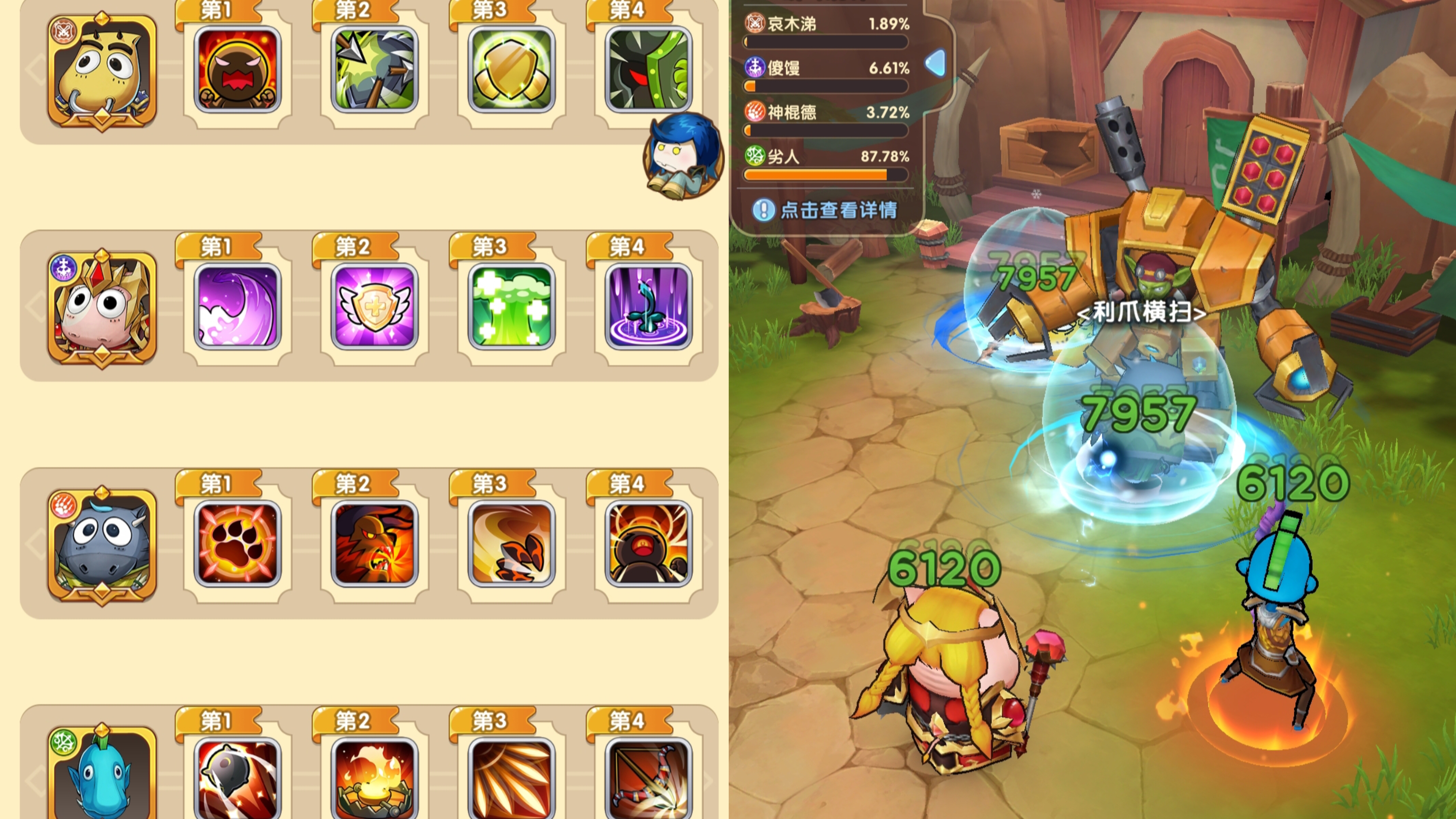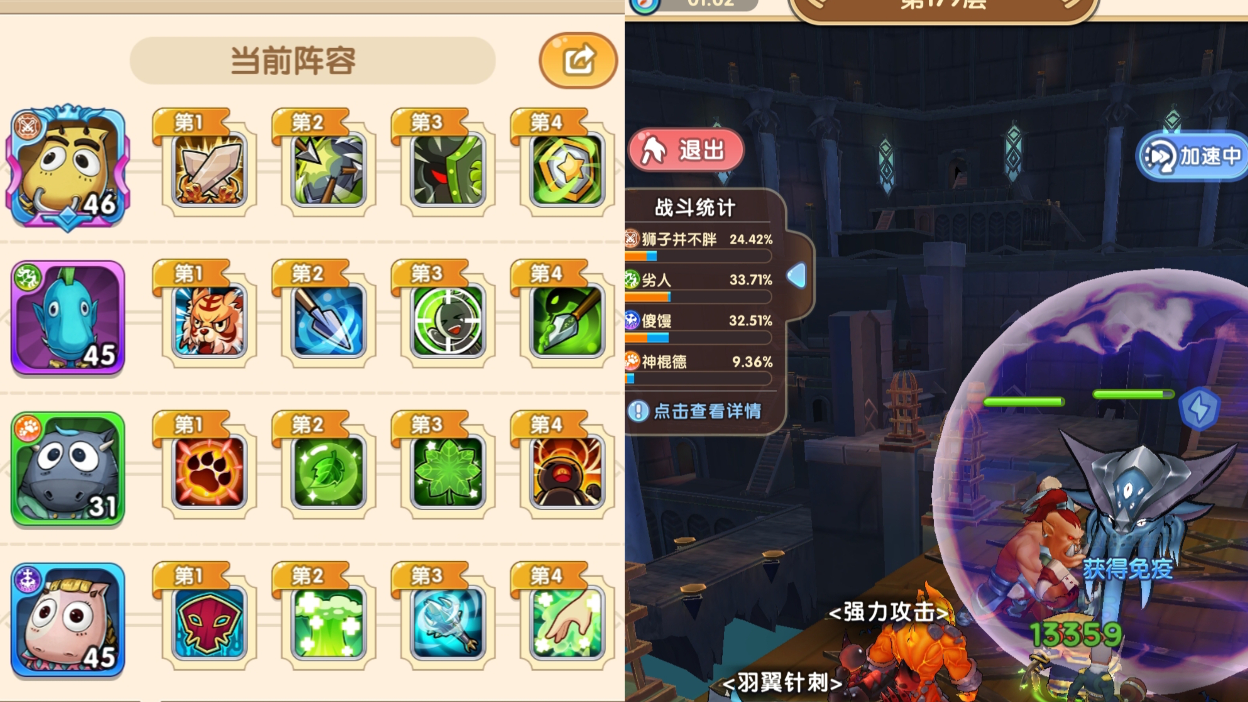 ⭐第二点:就是我把劣人的技能搭配也重新改变了一下。理由是我发现第十二关卡的boss【苏萨斯】非常难打,带回血,经常伤害不够。以及试炼塔boss179层以上的关卡都回血特别难受。
