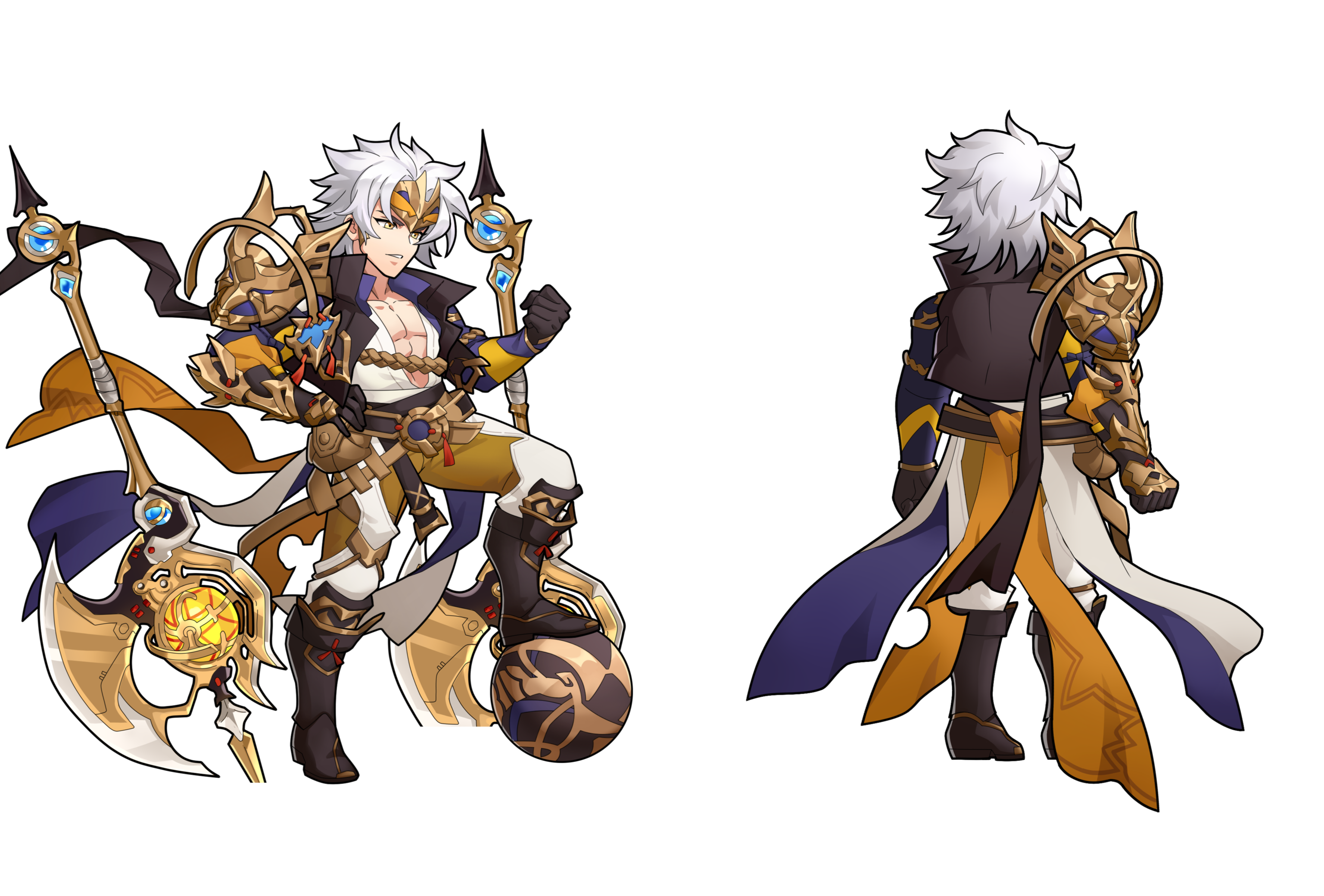 皮肤的整体风格为蓝金色,以蹴鞠为皮肤主题。卸下盔甲的瀚雪张辽化身蹴鞠健将,干练的短发随风飘逸,一身皮质软甲也难掩盖其健硕的胸肌,胸前滴落的汗珠表明其运动的卖力。背后的雪域狼王也化身金色巨狼,与瀚雪张辽共同在这片绿茵场上风驰电掣、追风逐电,蹴鞠周围电光火石,似乎这一脚便可旗开得胜,将瀚雪张辽纵横驰骋、逍遥恣意的人设凸显了出来。