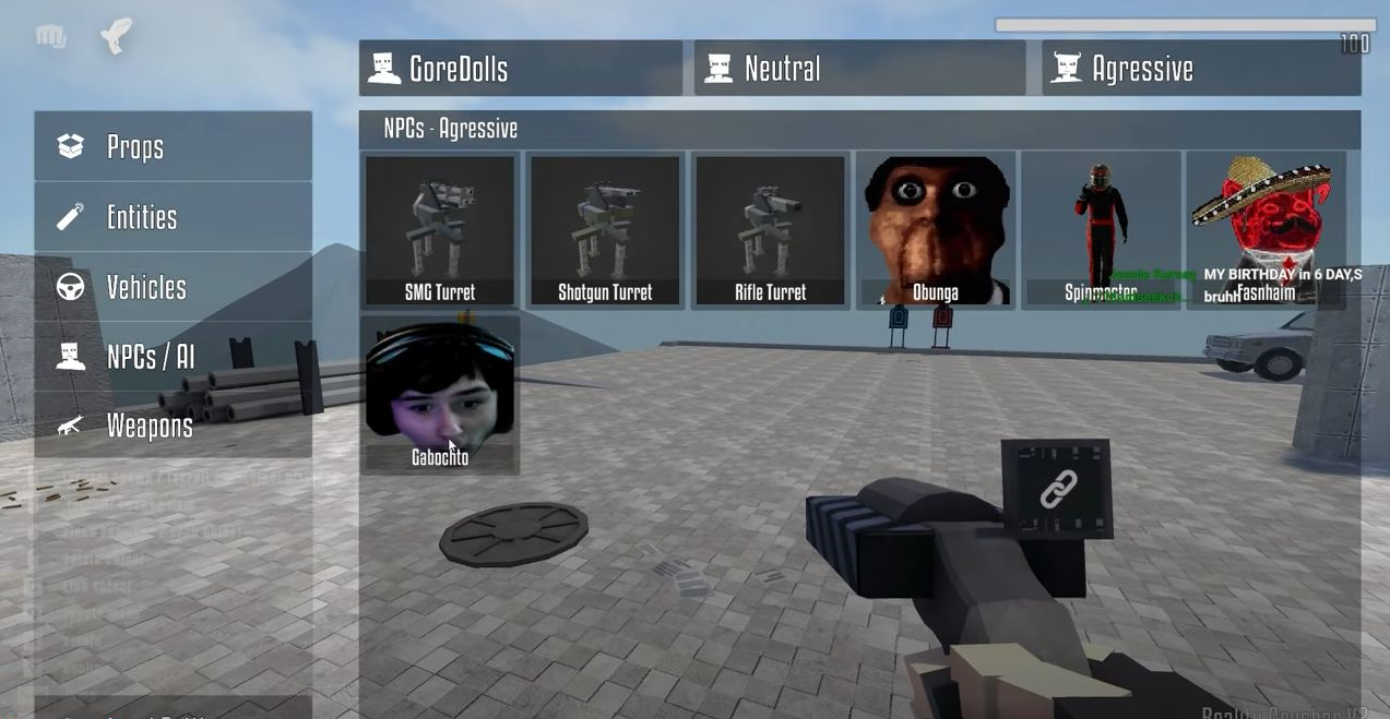 本次更新了一个全新的敌对AI——油管主g*chto。也算是一个比较有趣的联动吧~在游戏内的动作比较像obunga,顶着一张大脸向你冲来。
