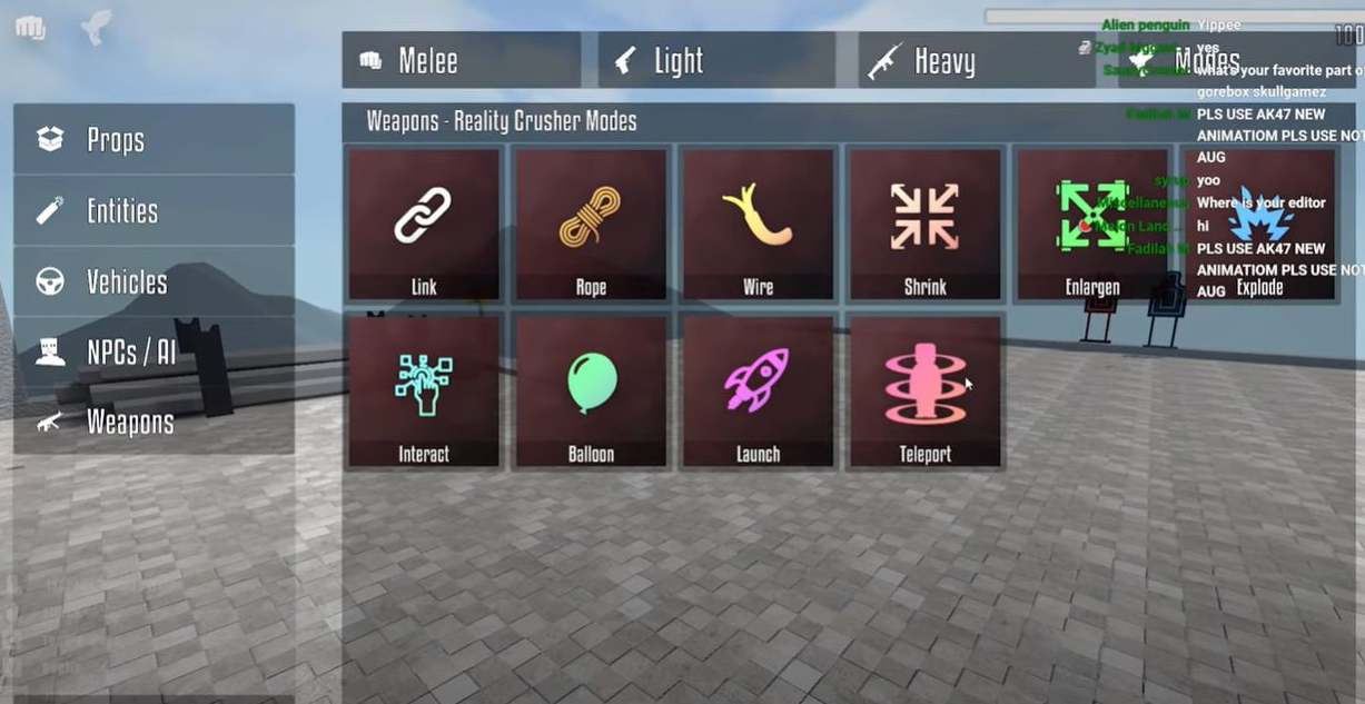 本次更新的重头戏来了!在之前一直是灰色的道具枪界面本次实装10个功能!从先前爆料的可以将人物链接在一起的绳索
