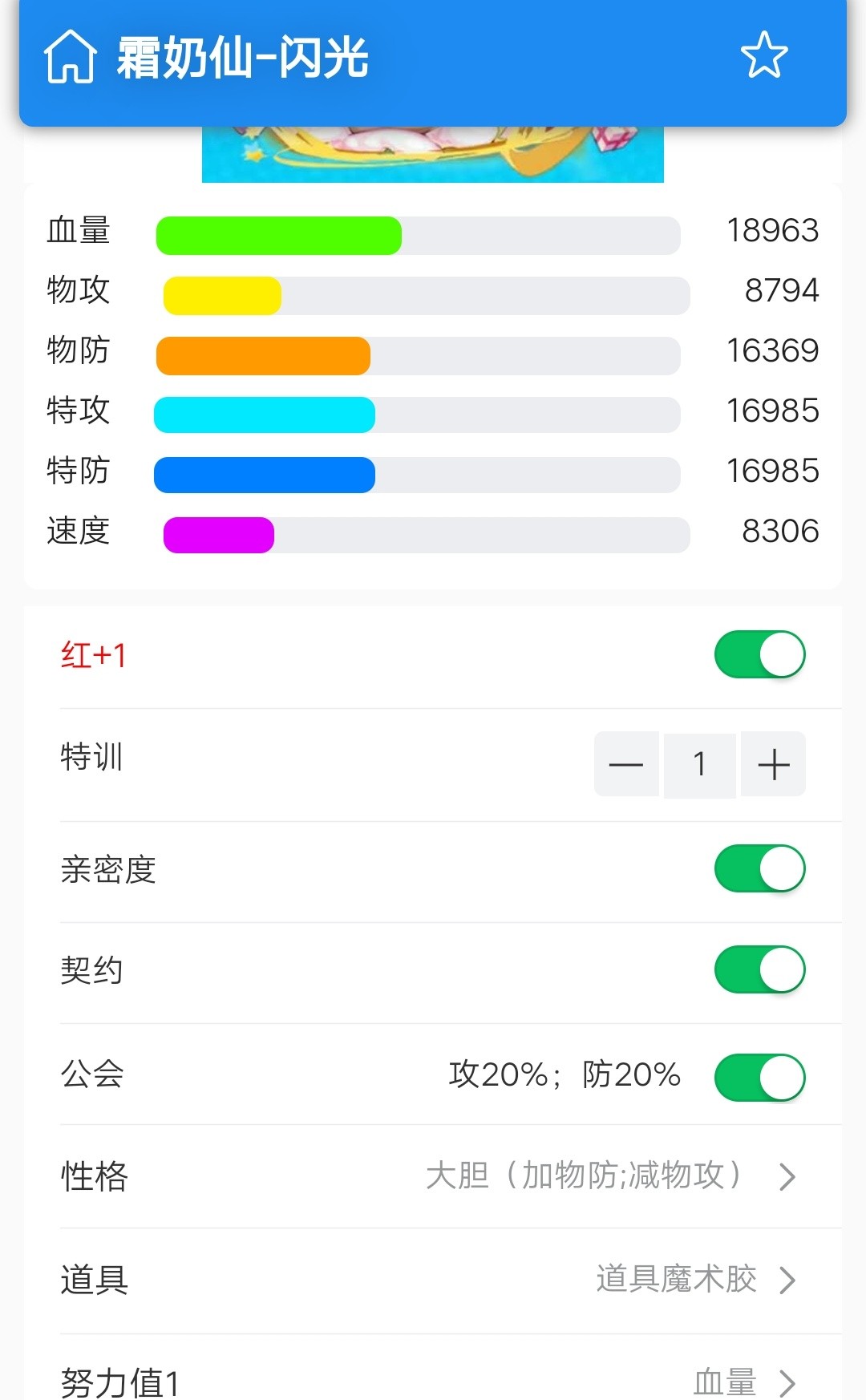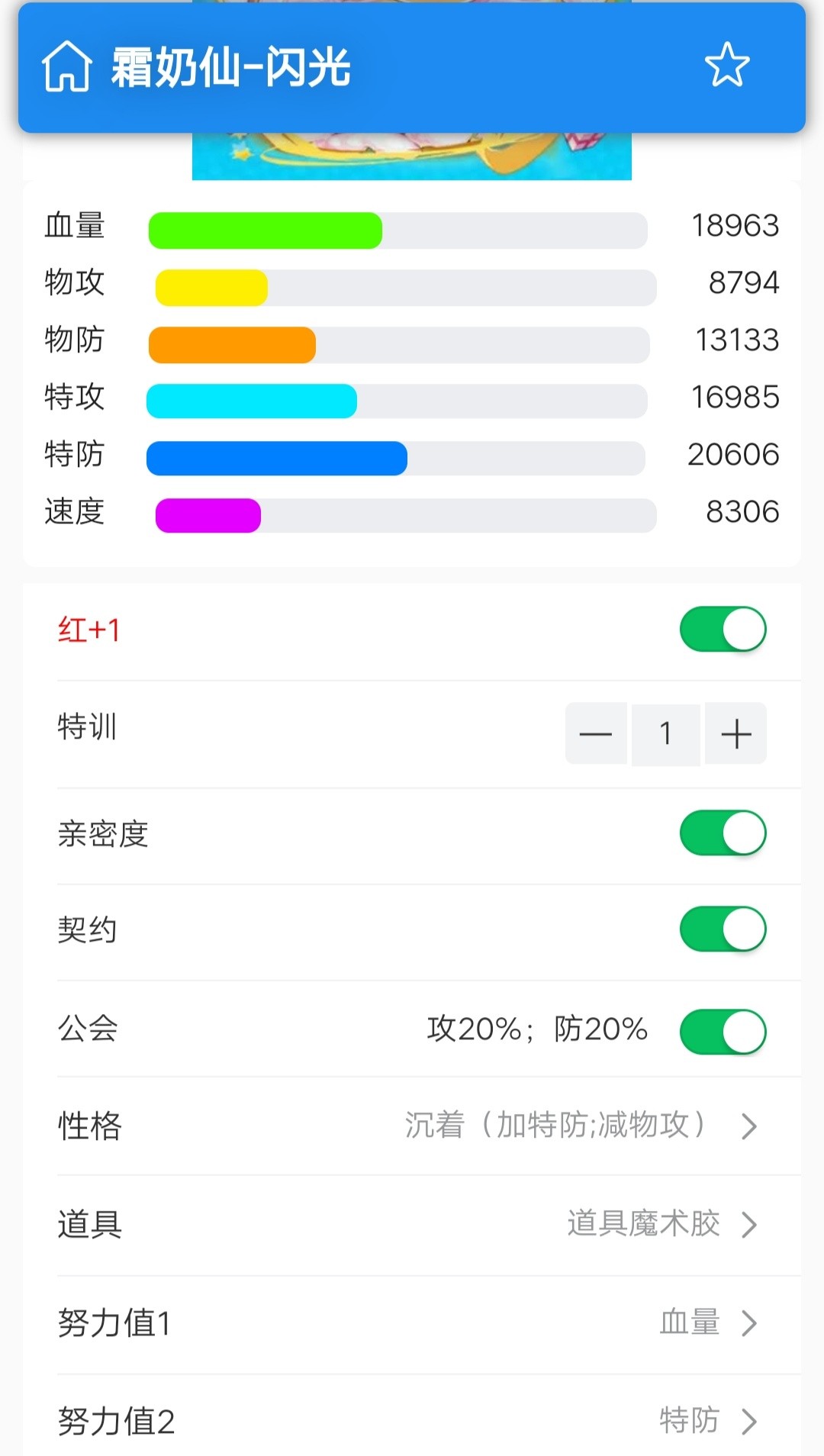 下面是分别是它特一满配后携带道具魔术胶的特防与物防面板。