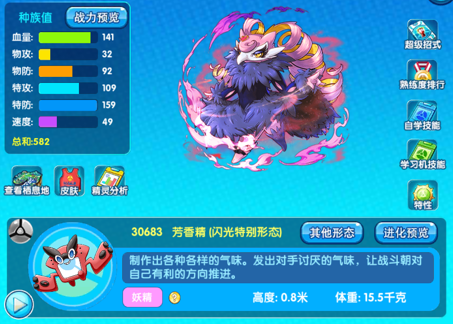 总结分析:芳香精,这套组合是我能够想到的最好的了,在技能方面的话,月亮之力是可以自学的,玩家们不必担心缺少这个学习机