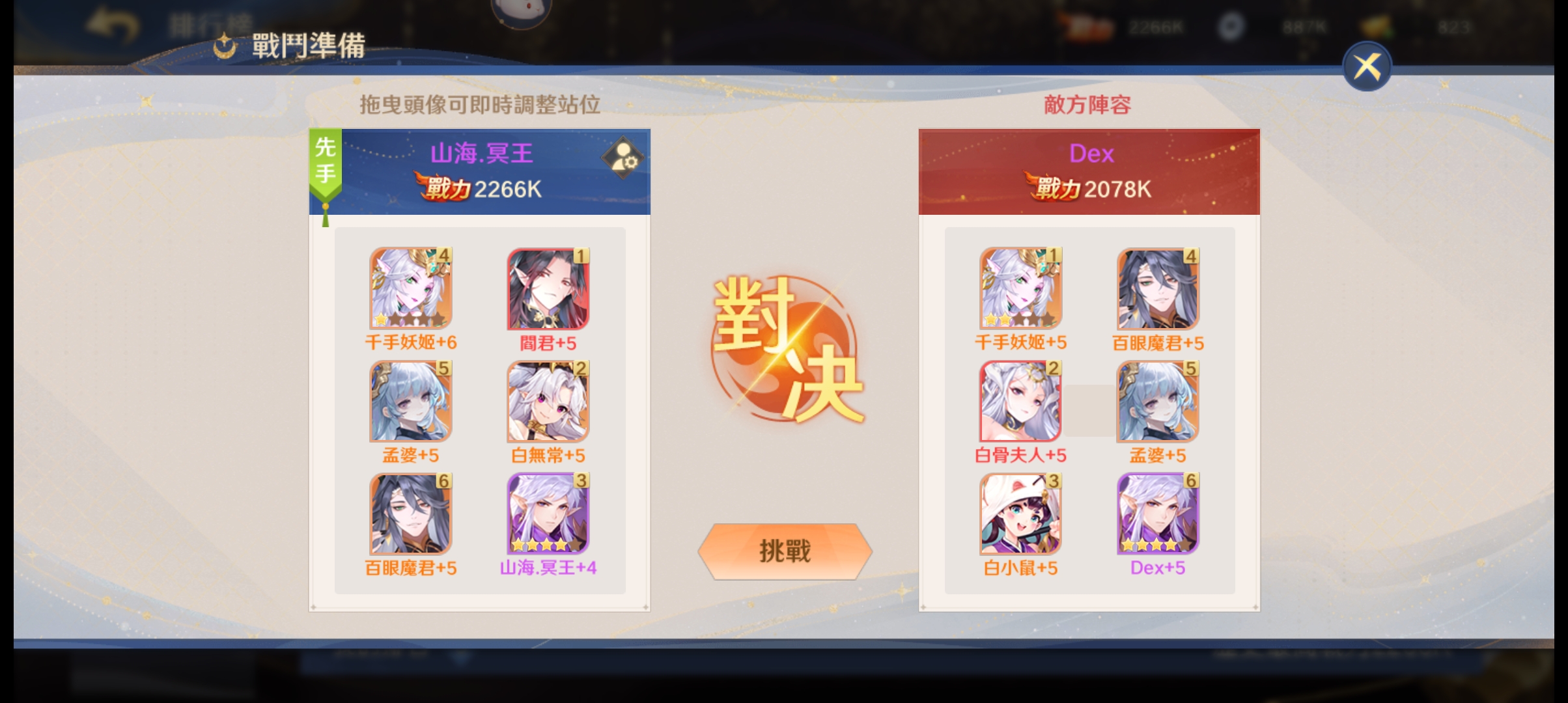 ㅤㅤ目前我暂时在用这一套阵容,目前这个阶段阎君和白骨还是没法比的,这个是大实话。好不容易把小白鼠给换掉上了白无常,跟同级的冥界打还是不理想。