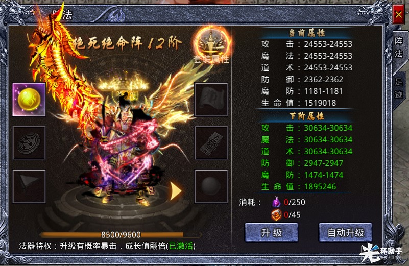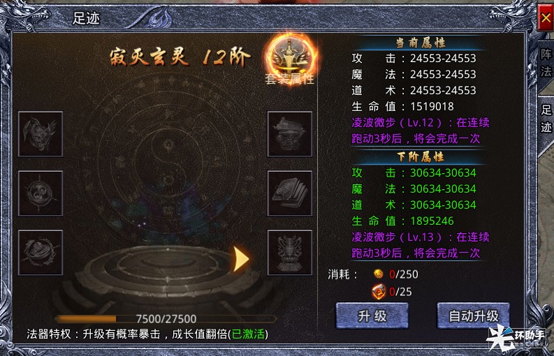 《龙戒》阵法系统勤勉搬运的后辈君发布于 2023-04-11关注 勇士们在《龙戒》里征战的成果如何呢?下面介绍的阵法系统,能大大提升勇士们的战斗能力喔~一、阵法说明1.消耗阵魂之心和星魂石提升阵法等级,获得属性加成2.阵法可装备阵眼、阵旗、阵枢、阵魂、阵纹、阵盘六种装备,每种装备都可以提升基础属性,凑齐一套阵法装备还可以激活阵法精通,额外提升基础属性和阵法属性二、足迹说明1、消耗光影之心和星魂石提升足迹等级,获得属性加成2、阵法和足迹同时达到一定等级可以激活套装属性,额外获得基础属性加成
