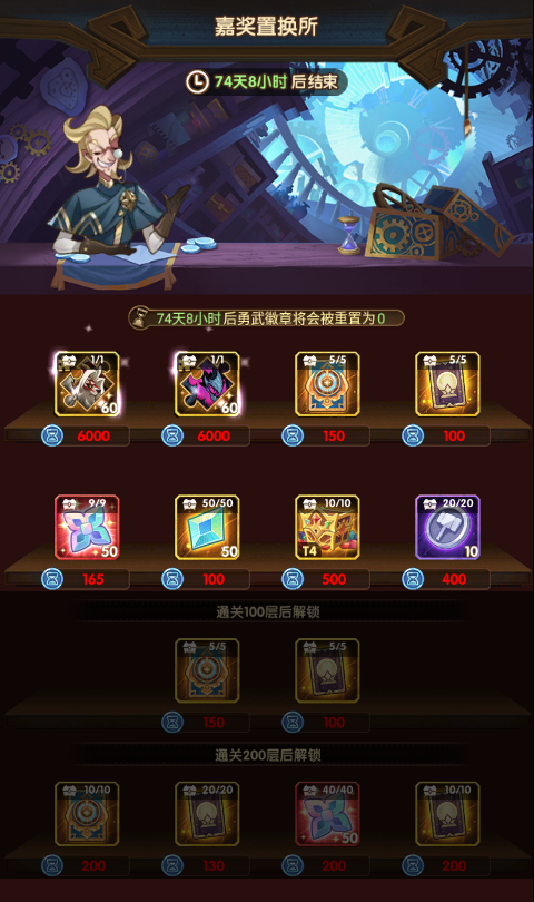 《剑与远征》先锋服乱时改版简略介绍fatchen发布于 2023-04-12关注作者:光环远征小屋兑换奖励如下,不算排行榜的话正好一个sp 排行榜奖励15天一次,一共应该是4次 层数奖励,160层毕业 总体说明:1.本次活动为改版后的测试赛季,活动开放60天。每个赛季期间间隔约30天,具体以活动日历为准。在本玩法内,所有英雄统一为360级,所有英雄的装备(包括未穿戴的部位),统一至传说 T4配置但不影响英雄的品阶,不享受神器属性和效果的加成。2.每层会随机一个不同类型的挑战事件挑战一层后进入下一层。每20层首次挑战胜利可以获得额外奖励。3.每次开始挑战前,玩家必须选择层数所对应数量的团队信物。4.在挑战过程中,会随机掉落“神印”每个团队信物有3个空槽可以装备神印玩家也可以选择将获得的神印转化,为信物提升基础等级,基础等级的上限受当前层数限制。5.团队信物与神印对单个队伍生效,提升乱时之境战斗中英雄的能力。6.挑战完每20层的首领敌人后,团队信物上面的神印都会因为时空扰动而被清除,团队信物的等级不受影响。7.团队信物是一种特殊道具,只有在乱时之境中可以生效和查看,每局挑战重置后会被销毁。8.玩家在每次挑战时,拥有一定量的“稳定值”,当“稳定值”为0时,将会强制结束此次探索。9.“稳定值”会根据每场战斗的结果损失,战斗时间越长,英雄损失生命越多“稳定值”的损失也越大。10.本活动中可以获得勇武徽章奖励,勇武徽章可前往嘉奖置换所兑换奖励,勇武徽章不可累计到下一次乱时之境玩法活动结束时将会清空。11.玩家可以通过“河时之楔”来提升英雄在乱时之境和中的战斗力,提升战力需要消耗时空尘屑和时空心核。12.时空尘屑和时空之序可以通过时空之仪挂机、乱时之境首次通关某层和时空馈赠活动等获得。赛季结束后将被销毁13.在活动持续时间内,提升时空之仪等级可以提高挑战时额外可选择英雄的数量、解锁“河时之楔”等级上限等,具体可前往时空之仪等级界面查看,新赛季开启后时空之仪等级重置。14. 在乱时之境中首次达到指定层数,可领取额外的护卫奖励。上阵英雄说明:1.乱时之境护卫队的英雄数量以及团队信物数量随着挑战的层数增加而增加,提升时空之仪等级可设置额外的护卫队英雄。2.护卫队可设置神话级精英+及以上品阶的英雄,不能是试用英雄。3.单局挑战中途,不能替换已选择的英雄。4.乱时之境只能掉落护卫队中携带的团队信物数量所对应的“神印”如果有空的未上阵格位,则随机掉落的神印会更少5.挑战中途招募的英雄,不占用护卫队位置。6.达到指定层数,可以开启从20的倍数的层开始的快速挑战,挑战前需要选择对应数量的英雄与团队信物。7.快速挑战不能超过本赛季挑战的最高层数。8.可以通过预设功能,直接使用最近使用过的信物和护卫队英雄的配置,或使用收藏的信物和护卫队英雄配置。