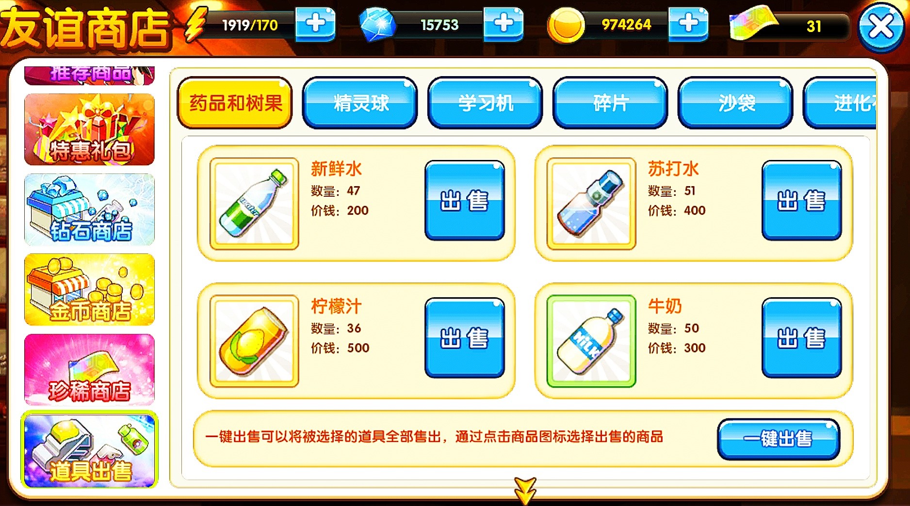 那些不用的普通,超级精灵球啊,各种普通回血道具,以及用不上的普通树果(解毒麻痹果实那些)相信很多小伙伴玩到这个时候都已经屯了很多了,不如拿去换取金币吧。