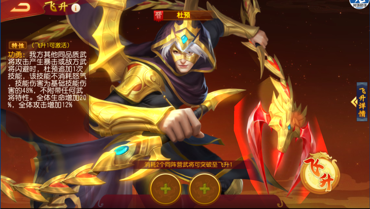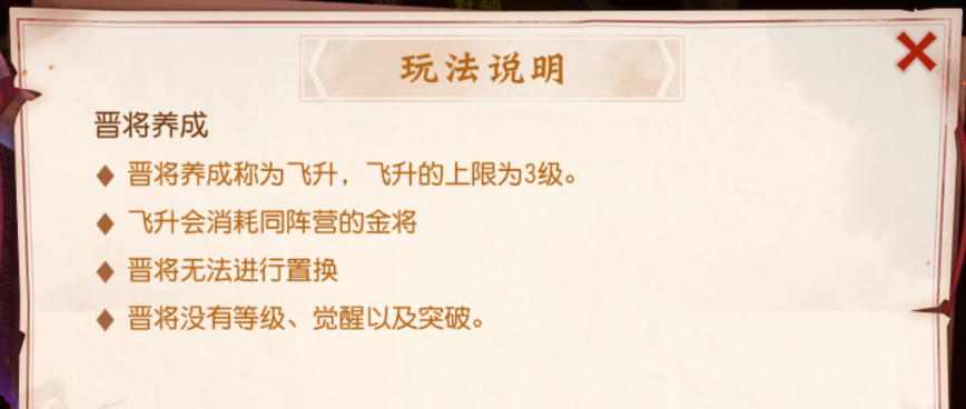 晋将的养成引入了一个新的机制“飞升”,相较于突破和涅槃的方式来说更加简单。