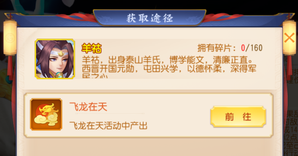 晋将的获取方式为全新推出的“飞龙在天”活动,具体形式尚未知!金将碎片箱和金将任选箱是无法开出晋将的,所以存了金将箱子的玩家可能要骂娘了。