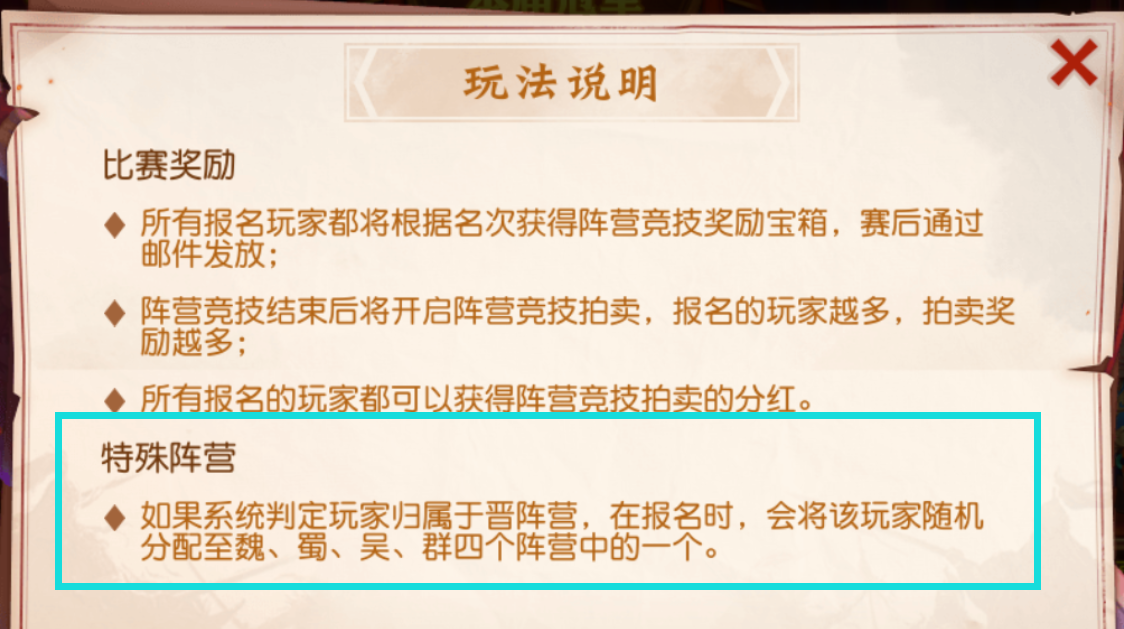 最后,晋国的加入并没有影响到阵营竞技的打法,并没有开设晋阵营报名,而是让晋阵营的玩家随机分到其他国家打,因为按照阵营划分的规则,在初期很难有人能把归属于晋的战力养的比其他国家的还要高。
