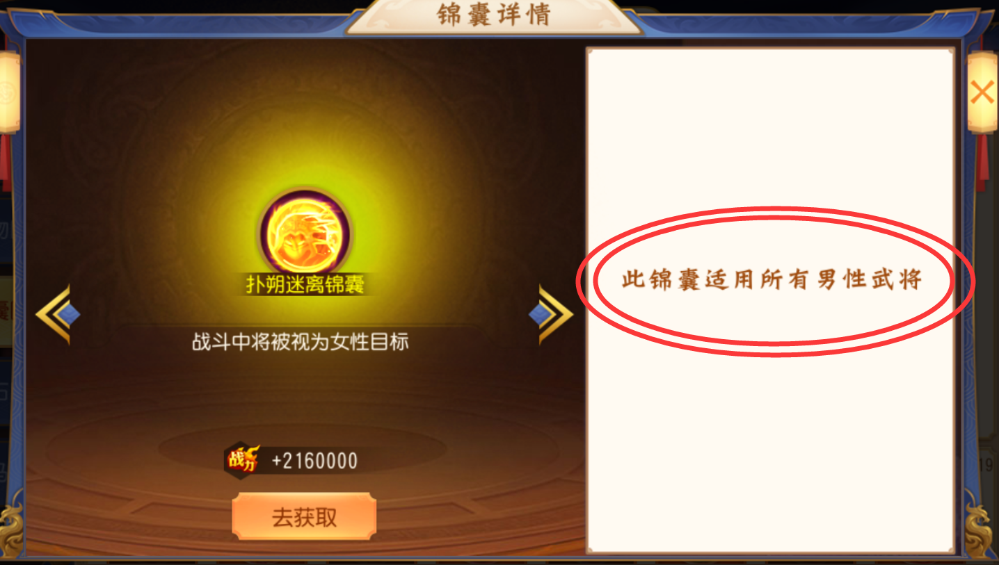 扑朔迷离的锦囊作用是转换武将性别,单纯看作用没有增加什么属性,但是却属于防御性的锦囊,用于规避伤害,主要针对了当前环境下比较强势的周姬和子上(也可以针对马云禄)。例如可以把阵容中的男性武将都变成女性,只留下一个比较肉的目标来卡死周姬的伤害;同理,在男将非常多的阵容下,也可以变出一个女性目标来卡死子上的伤害,例如纯群雄阵容中可以让董卓来带这个锦囊!