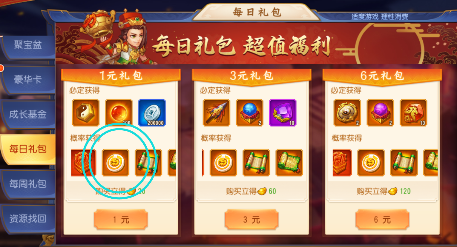 2、每日礼包中新增概率掉落见龙在田抽奖道具。