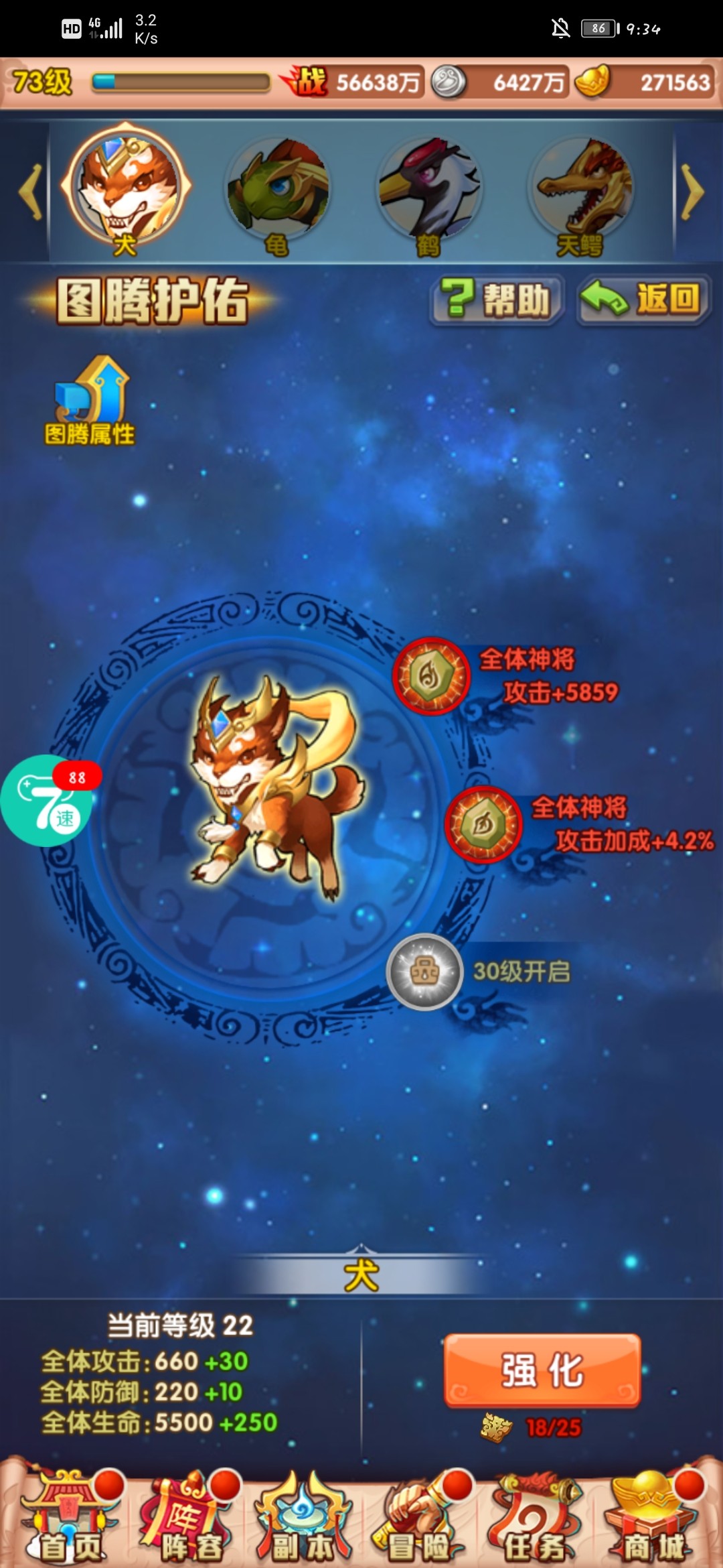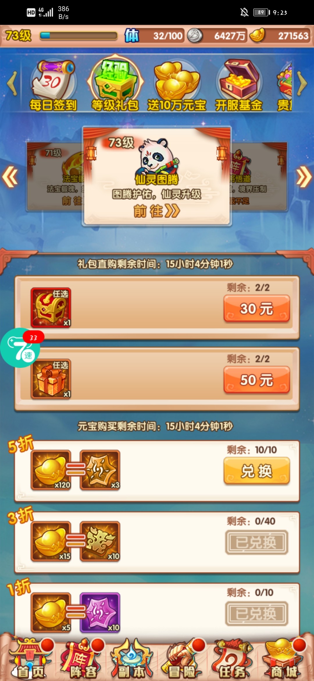 73开启仙灵图腾和雷音寺,仙灵图腾慢慢点就可以了,需要图腾印记。雷音寺可以获得,八点半上线领奖励就可以了。就是慢慢积累的过程。