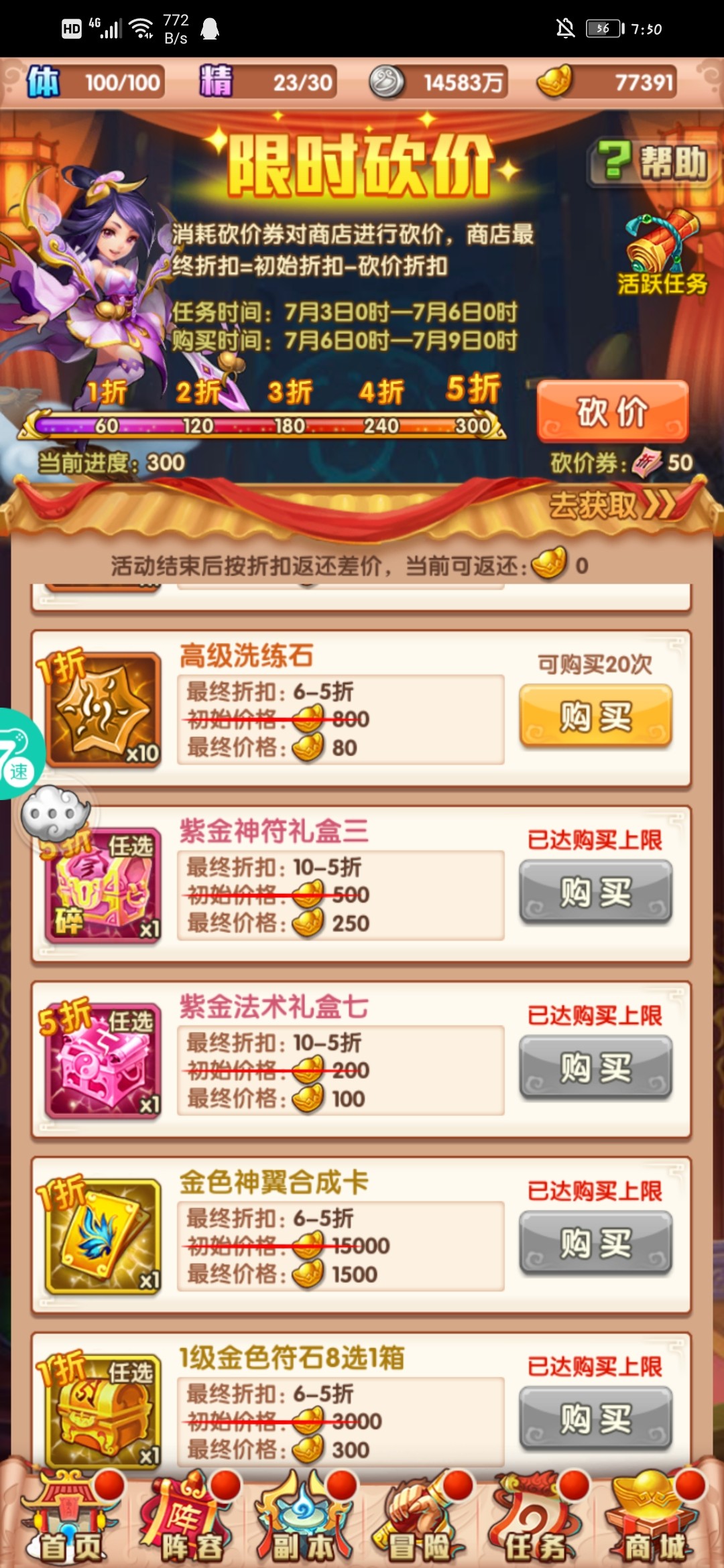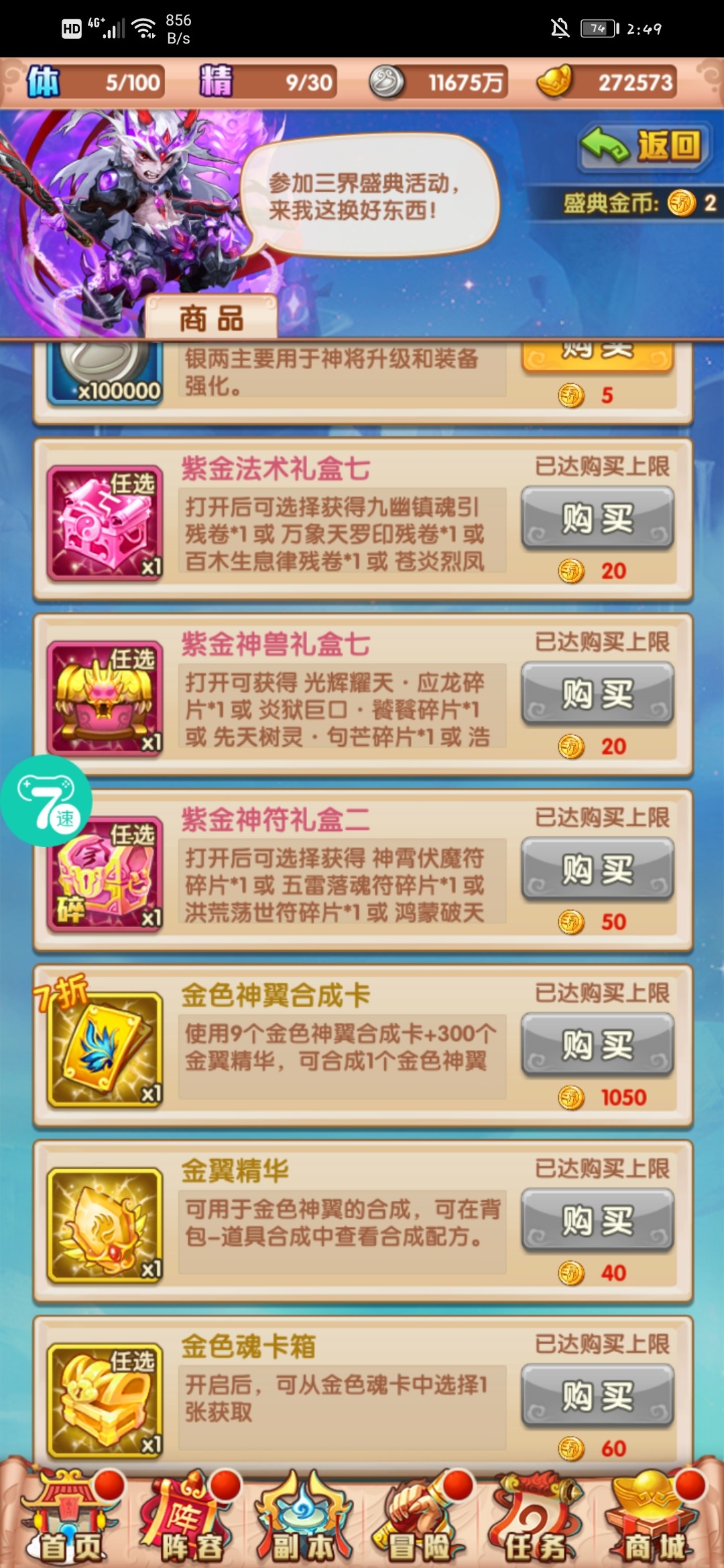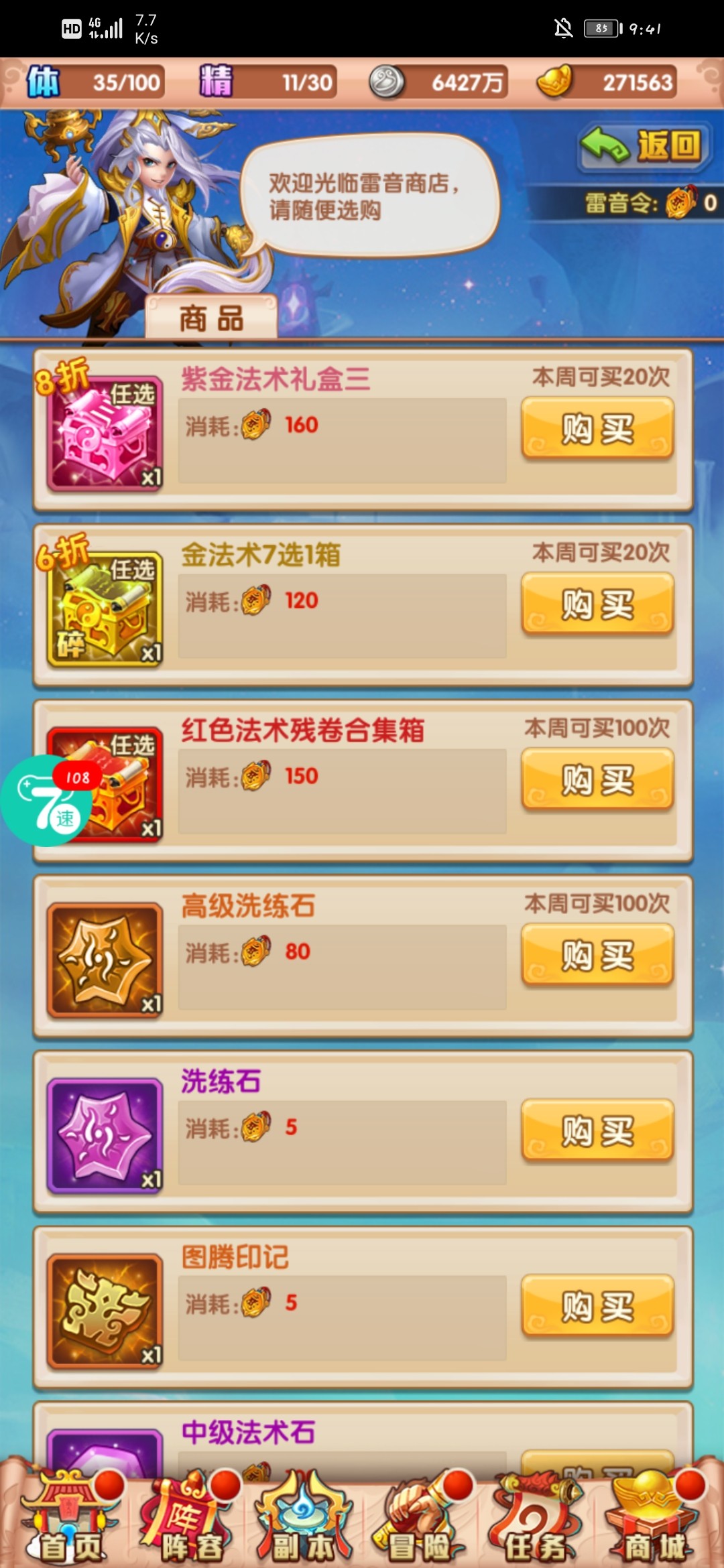 雷音寺商店咱们换紫金法术,金法术。多余的可以换图腾印记。