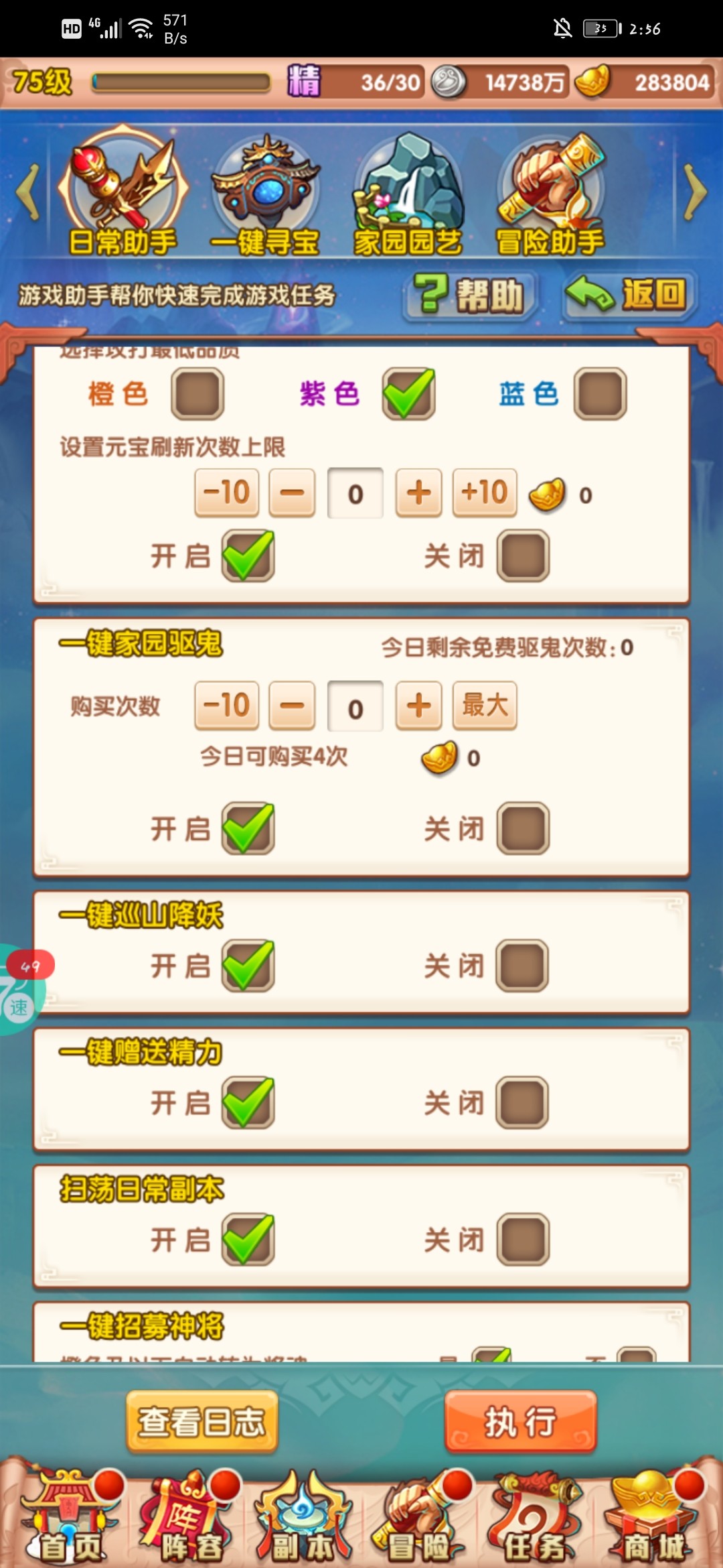 75级有了小助手,可以省点时间了。驱鬼还是每天三次。