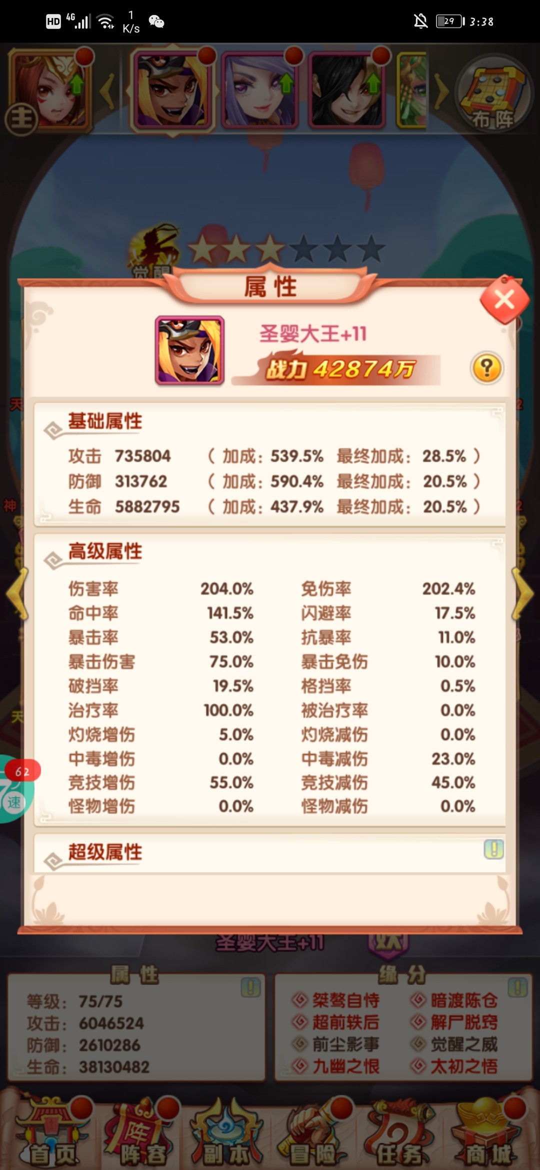 我的战力,好拉胯😂明天74级了,有事是一波小小战力提升,两千万应该不是问题😂今天到这吧!