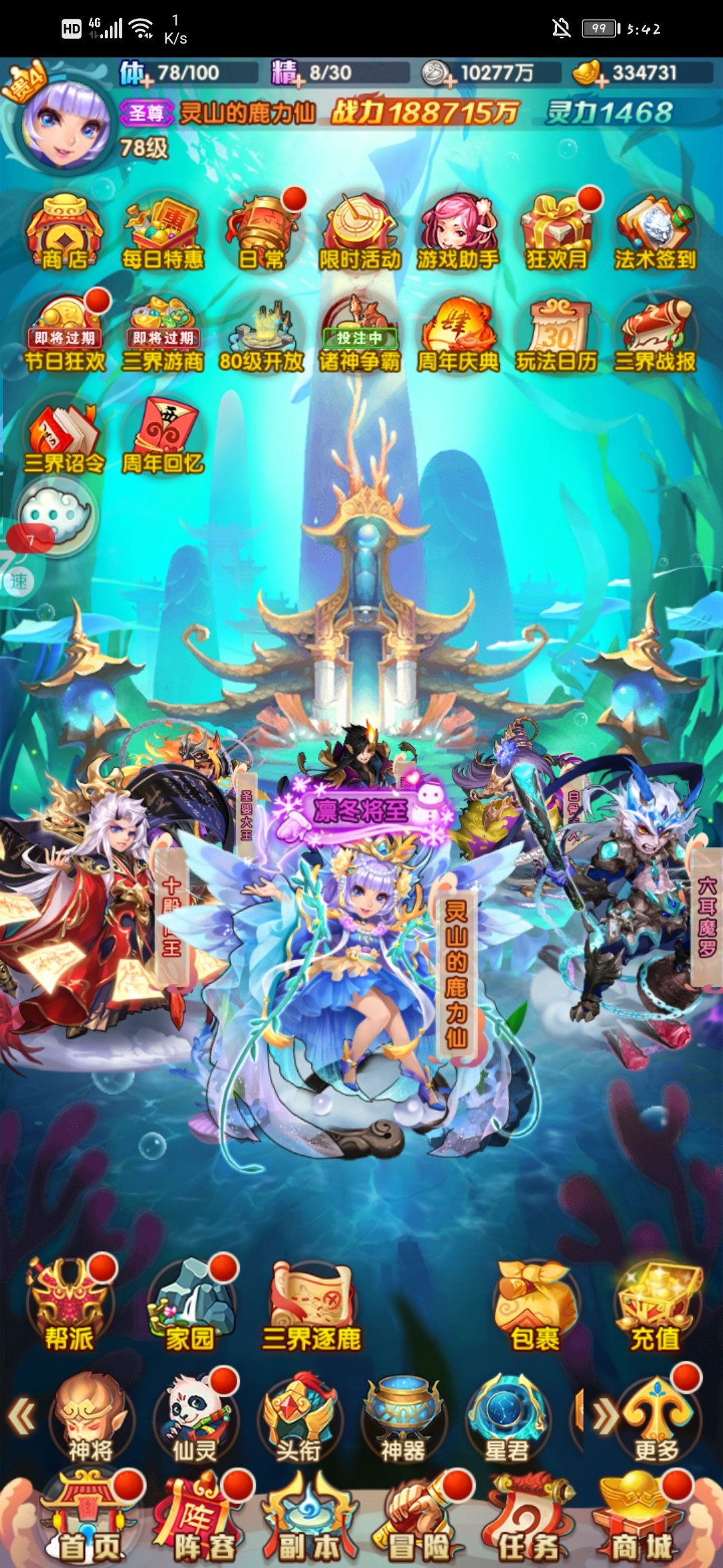 神器:神器原石来源有封神之战(到77级能买好多,能买就买),乾坤之战,异兽来袭(每周换完300个)。这东西白嫖就行了,来源很多(等级礼包可以买)