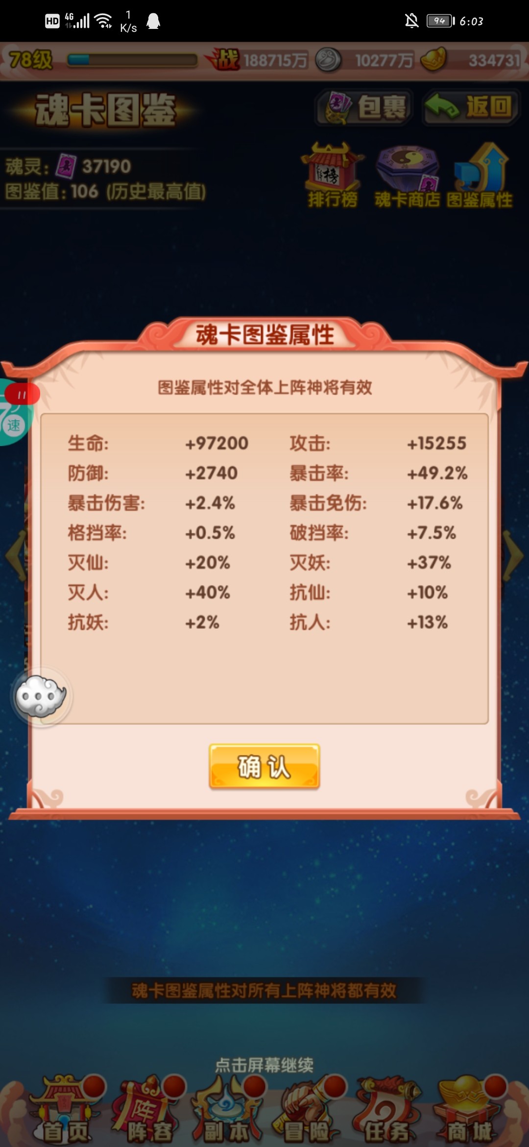 巡游天地(金卡图鉴):之前活动存了十八个,这次战力直接涨一亿😁。开暴击,暴击增伤、免伤。
