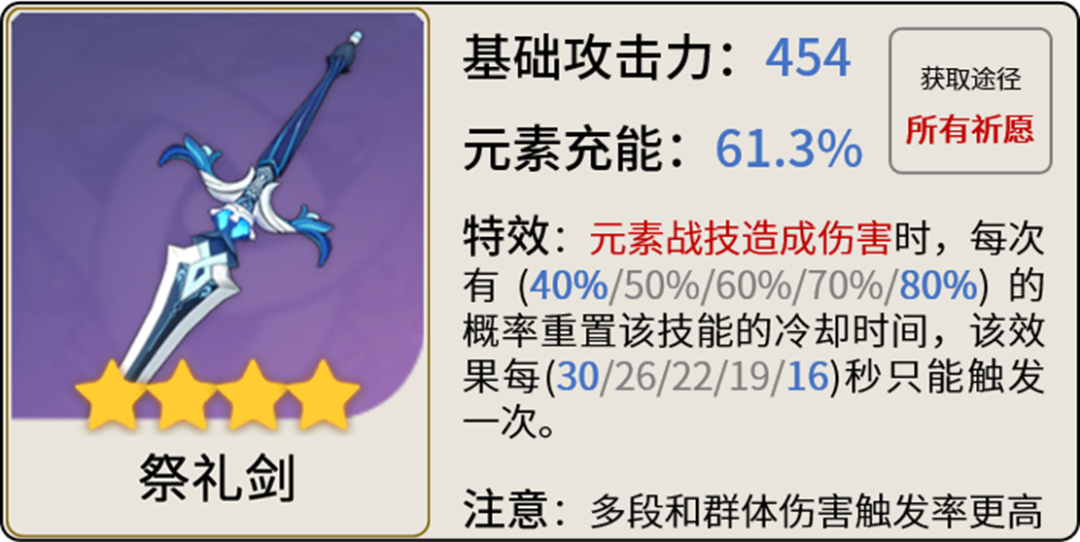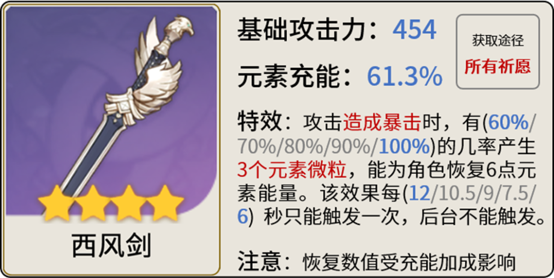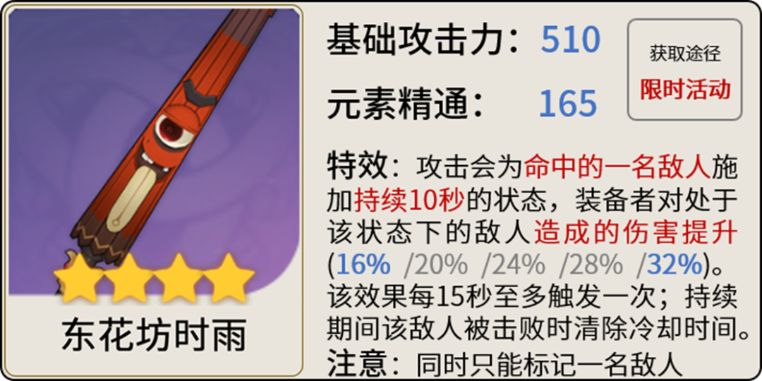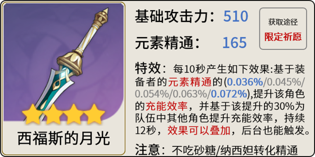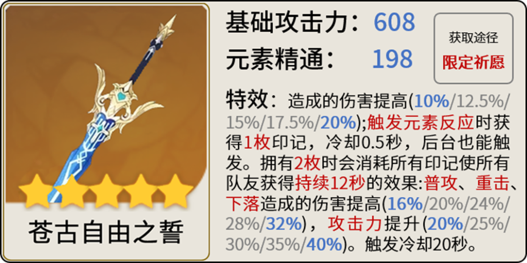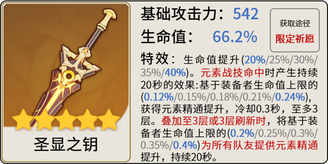 优点:大量的生命和精通,是最适合妮露的武器,想要吃满天赋加成这把武器是必不可少的。