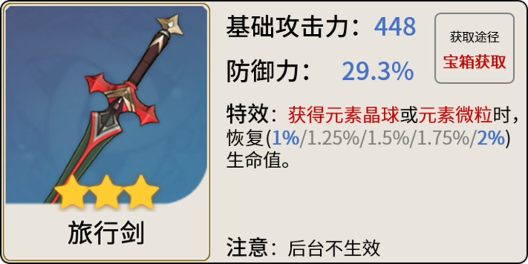 特殊武器:旅行剑(自己吃球可以回血,但是因为其他角色不能回血并不是很推荐)
