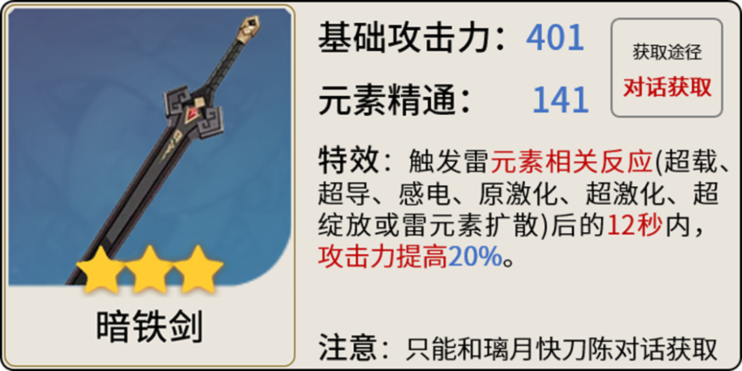优点:和璃月快刀陈对话即可领取,升级消耗的资源比较少。