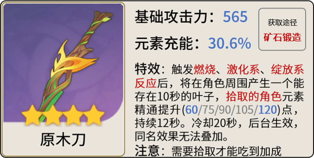 (1)角色受到草元素攻击会使附近的所有角色元素精通提升100点,持续10s