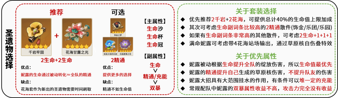 缺点:上限方面不如2千岩+2花海,妮露的精通只能提升自己生成草原核的伤害,妮露的生命能够提高全队草原核的伤害。