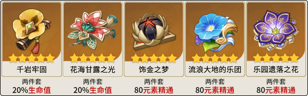 【2千岩/花海+2饰金/乐团/乐园】【最多生命】