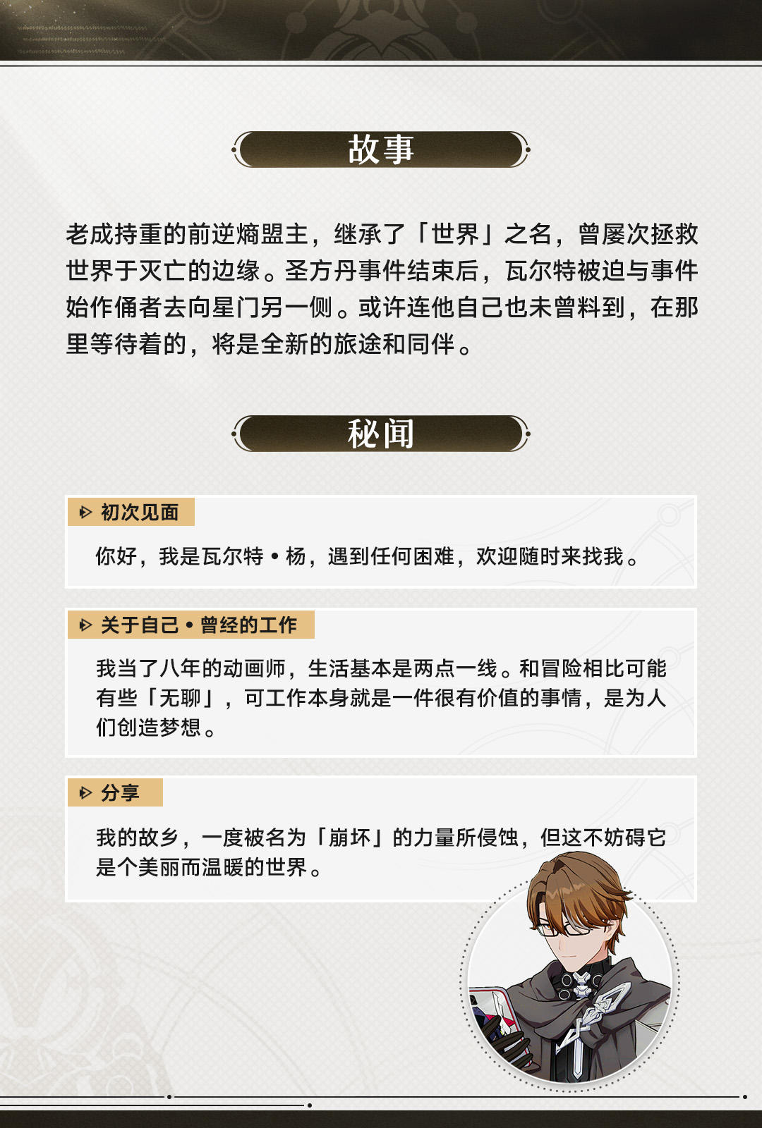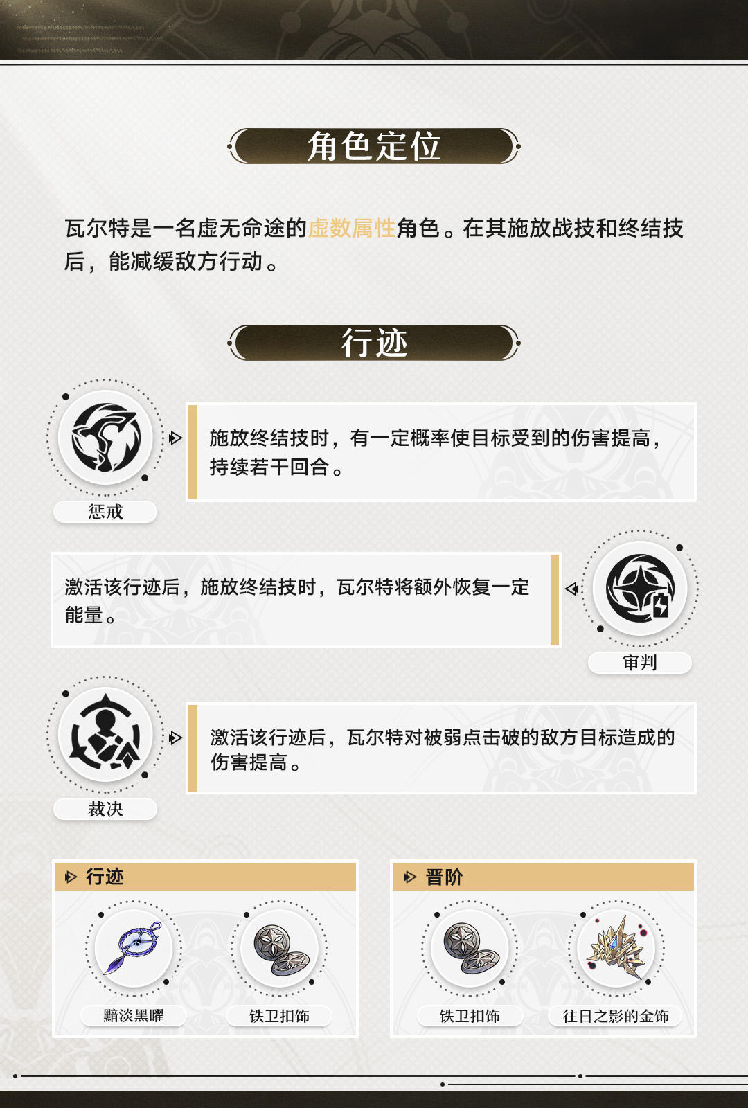 开拓者好呀,今天为大家带来的是「瓦尔特」的角色前瞻。