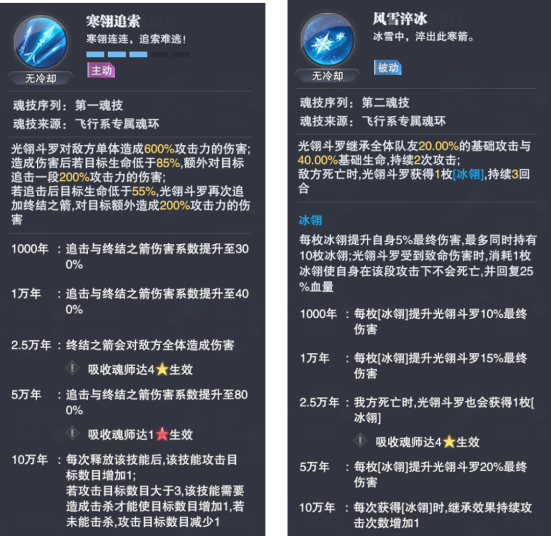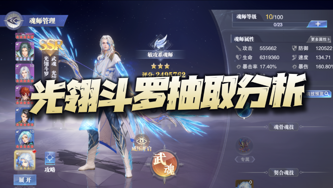 在PVP中,光翎斗罗的主要作用是主C,特别针对以强攻系魂师为主的敌人会有不俗的限制作用,其魂环配置维一初步认为是X212,加点可以考虑1个速度魂环+3个攻击or暴伤魂环(1个速度魂环是为了大概率满足触发2-2被动的速度要求)