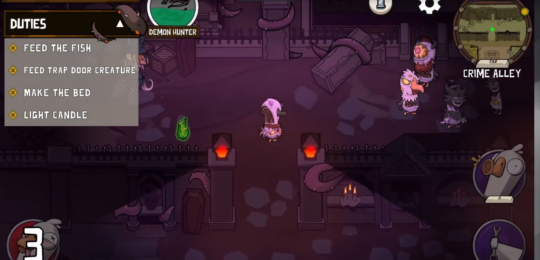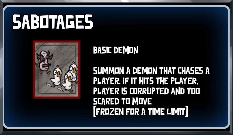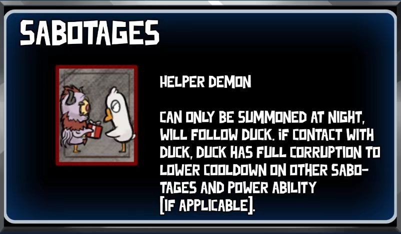 助手恶魔只有晚上才能出动,会一直住着鸭子,若鸭子被追上,则被腐化并且能力得到提升。