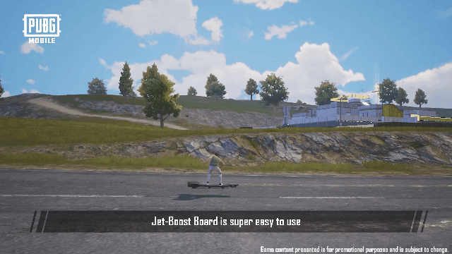喷气滑板滑行展示,任何地形都能驾驭,无论是山坡还是小镇。同时喷气滑板还可以进行收纳,可方便于在追击敌人的过程中,当敌人进入房间里,可将滑板收纳至背包,然后进行追击,不过缺点就是比较容易被当成靶子。
