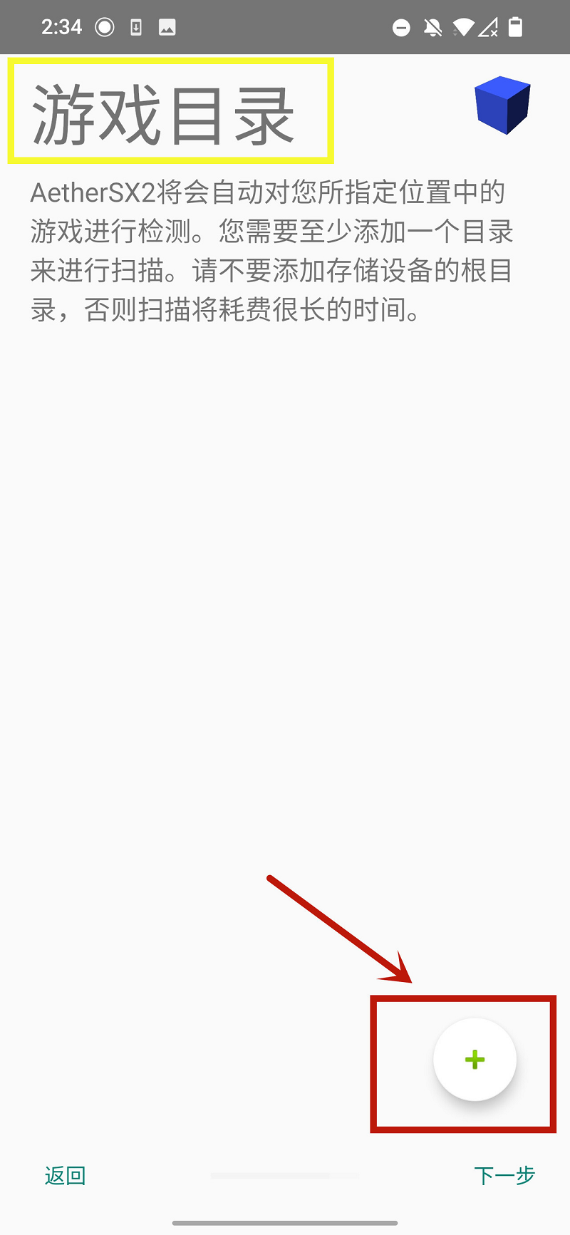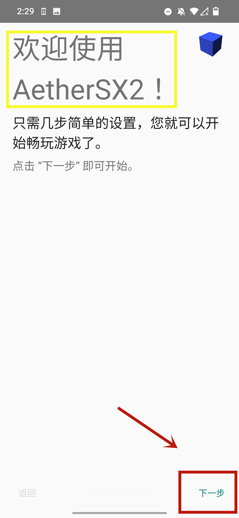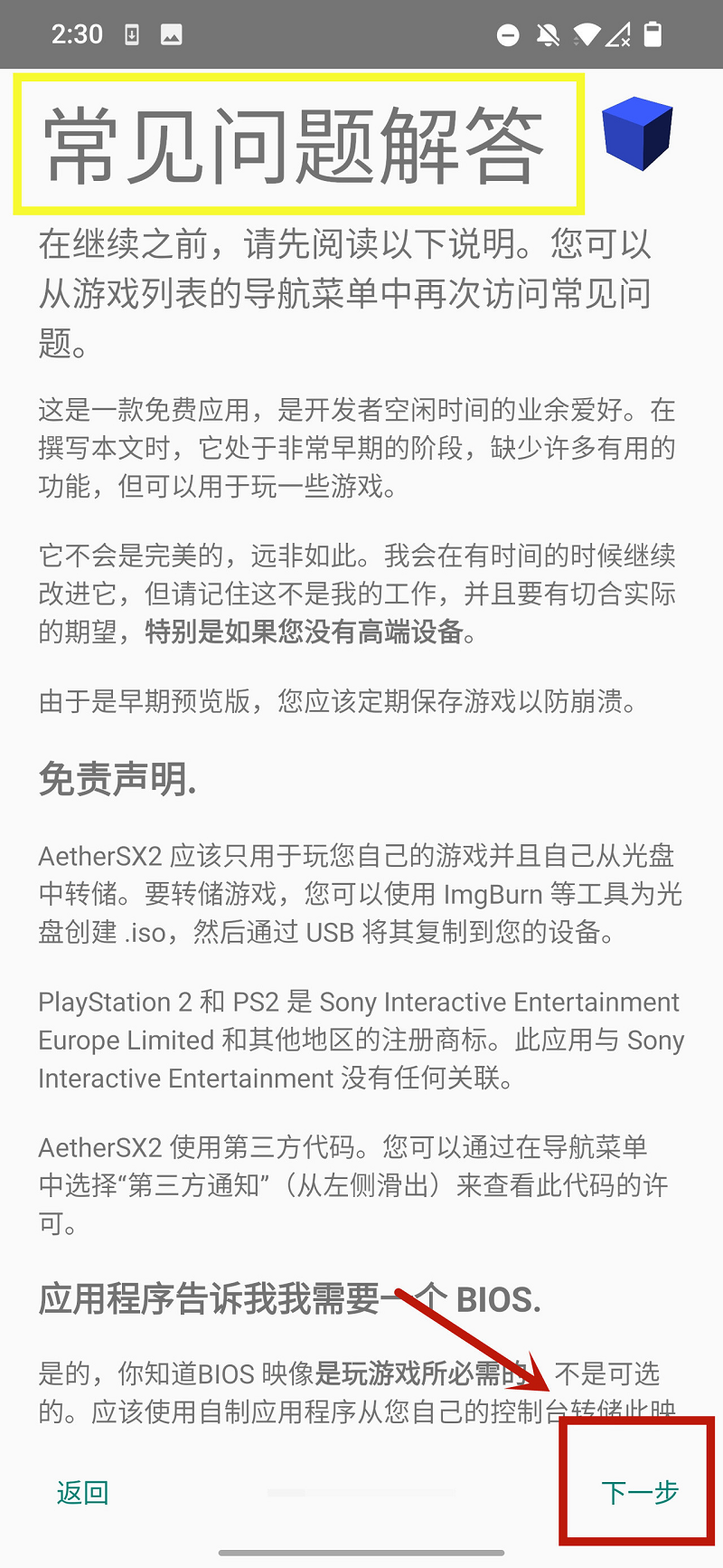 ②欢迎使用AetherSX2!点【下一步】