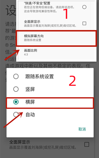 点击【模拟屏幕方向】→选中【横屏】