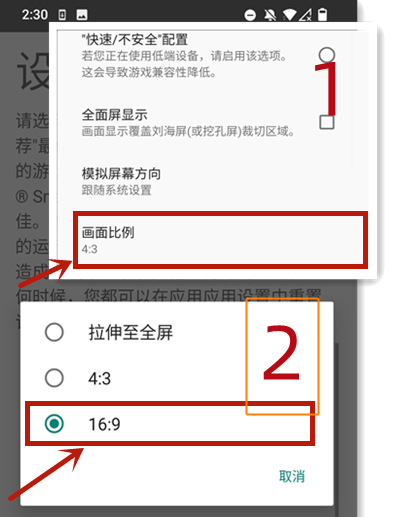 点击【画面比例】→选中【16:9】