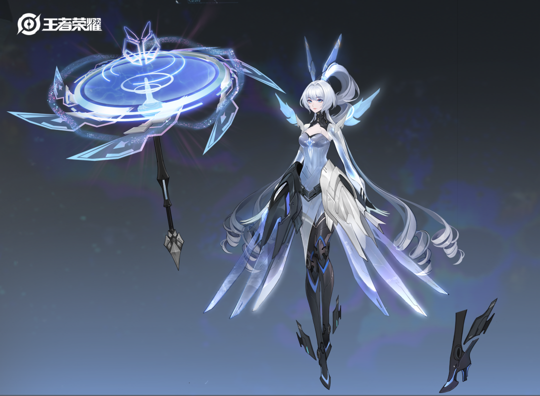 配饰上,裙子造型设计为科技感受侧翼,标志性的耳朵呈现出晶体状的科技材质。手臂则为半透明材质,机械骨骼若隐若现。