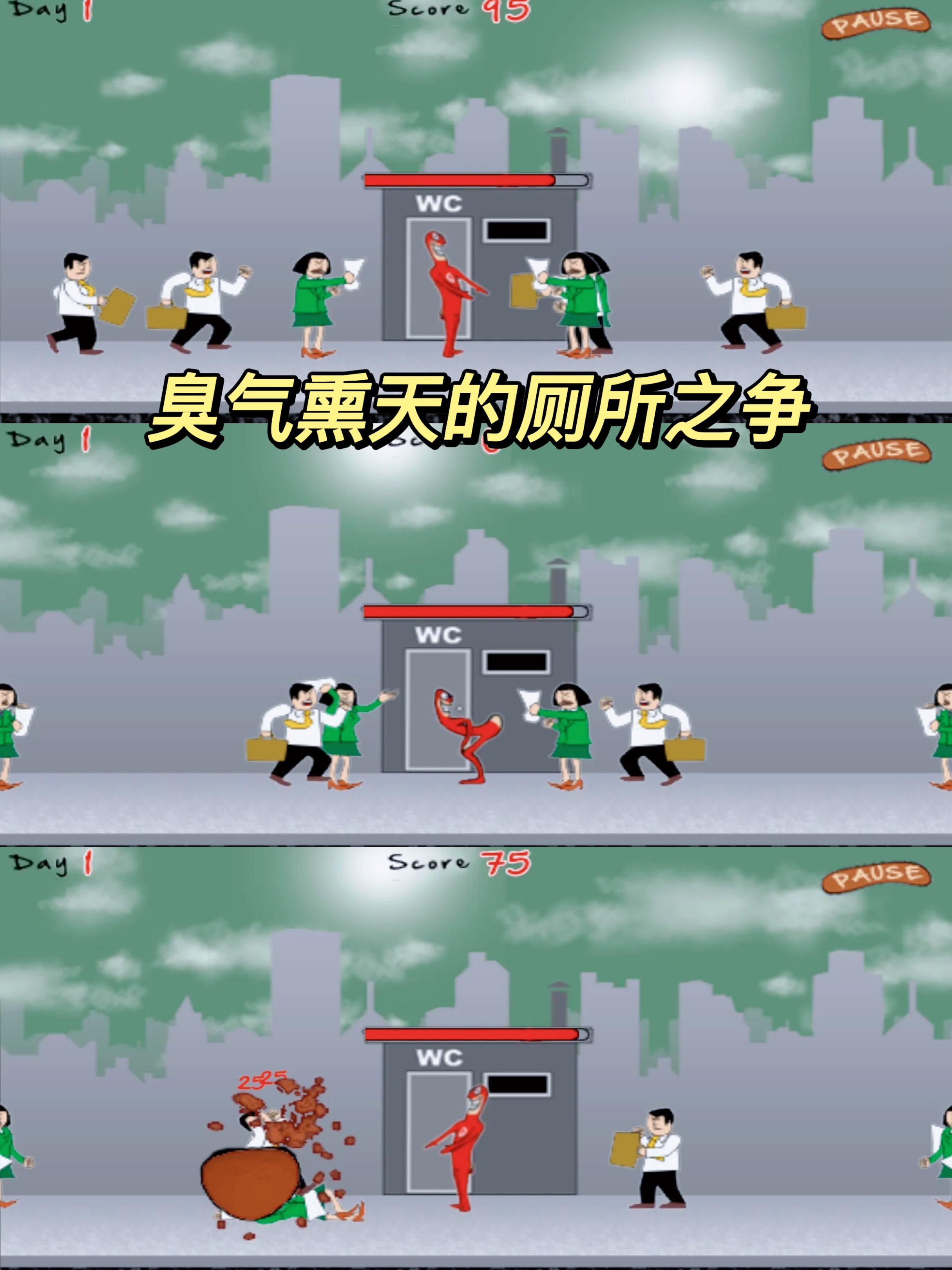 📝这款游戏主打的就是恶搞👽,玩家利用各种生化武器牢牢守住厕所不让任何人进入❌,面对单一的人👩一个小小的便便💩就可以解决,但是遇到成群结队的人时要采取更具杀伤力的技能将其赶走🙅。