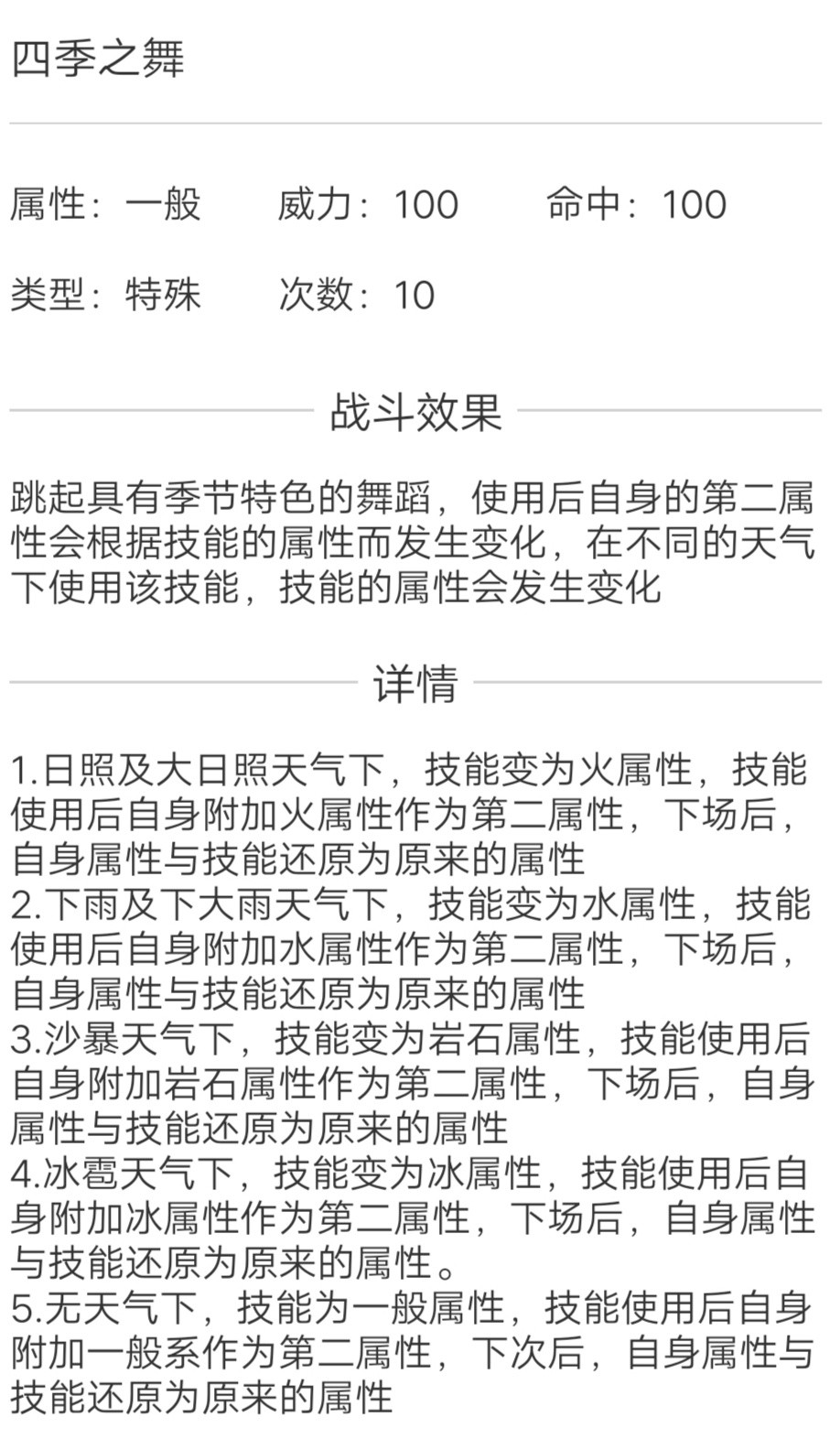 很多人觉得使用它,就可以在变成妖精属性后,再触发天气属性,但是我实验了一下,并不是,这个在特性改变技能属性后,在特定天气技能属性不会再变化。