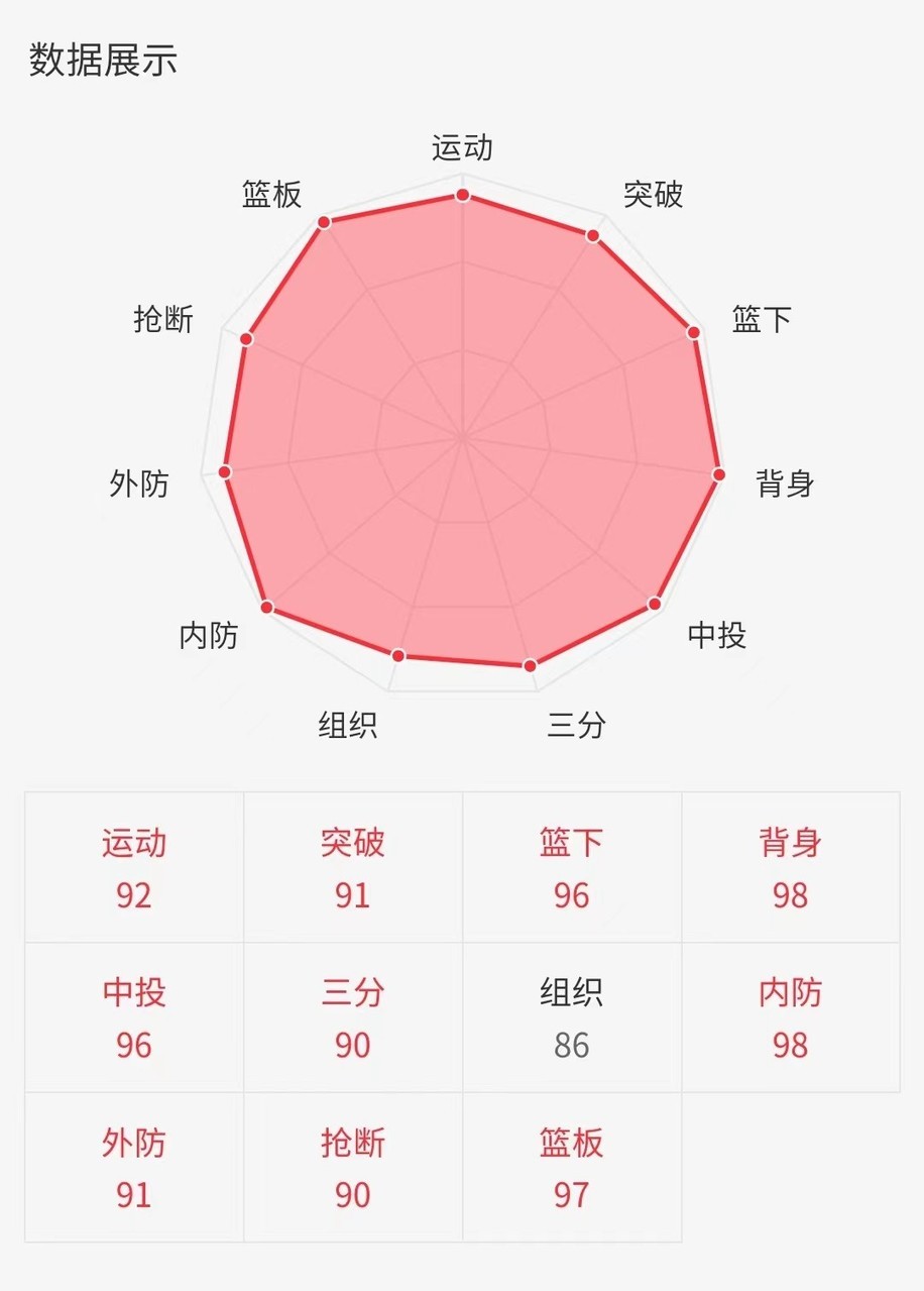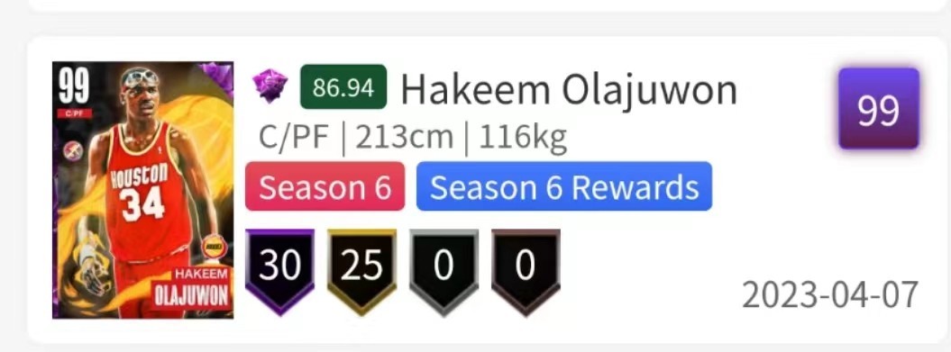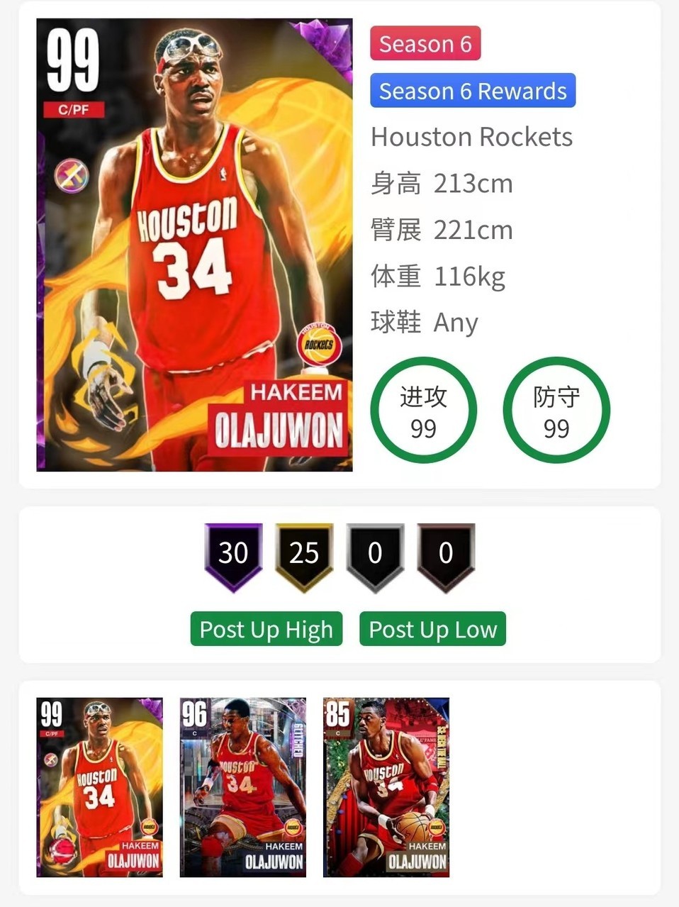 Hakeem Olajuwon(C/PF 96)数据一览
