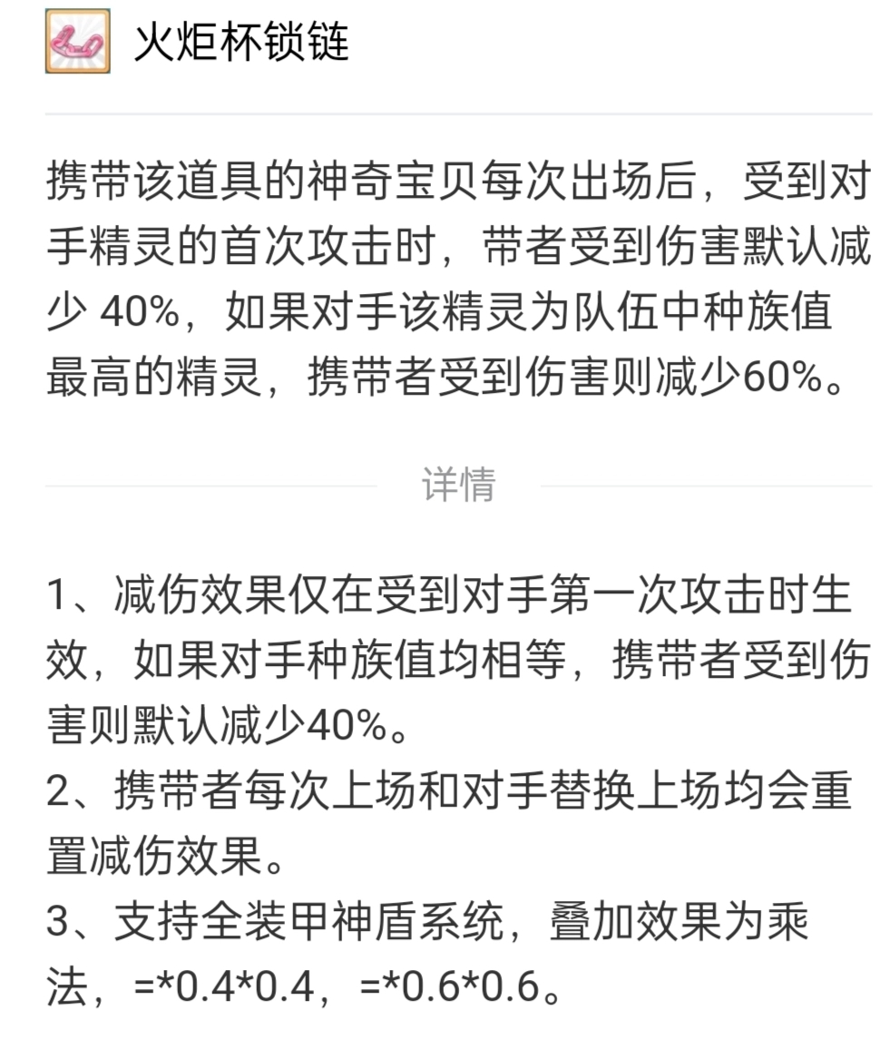 还有就是锁链,在这个万物皆可锁链的版本,拥有锁链可以极大程度保证肉度,不过那样恶霸替身触发有时候就不容易,但是有舍就有得,对方打不动了我方就丢蘑菇孢子,绝对的催眠让一般队伍很难抗住。最后就是腰带了,这是最后的保命手段,在遇到拥有超高伤害的精灵时,能强制保命反手给对方丢蘑菇孢子,而触发恶霸替身还可以额外多一回合机会,算是个极高容错率的道具了。