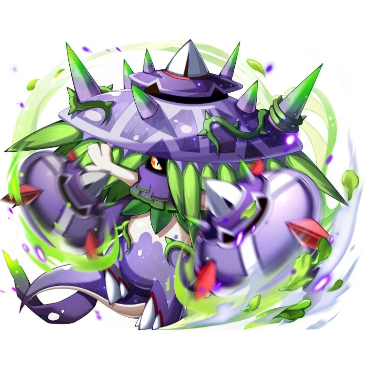 总结:图鉴说猛恶菇兼具恐龙和败露球菇的特征,是非常奇妙的生物。但它的智能似乎较低,宛如性情凶暴、一味猛打的拳手一般,复刻的画风倒是没怎么提现恐龙,不过作为999级别宠物,虽然强度不如蟑螂妹,但是放在现在版本还是很舒服的。